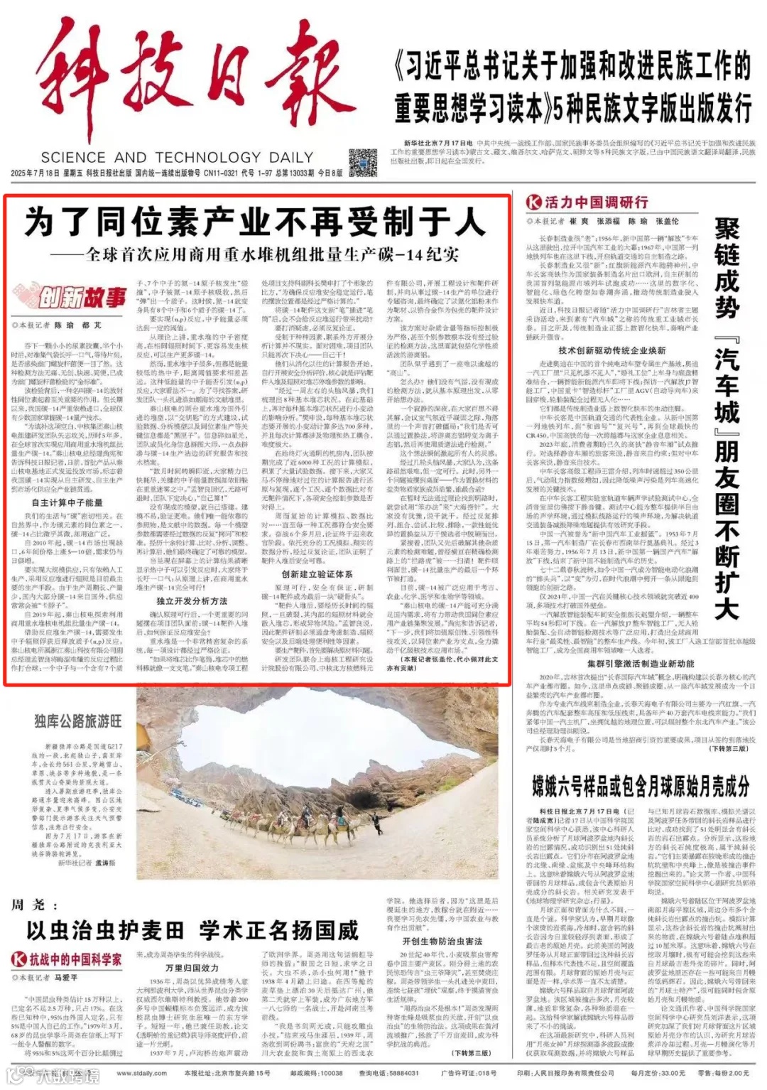 “为填补这项空白,中核集团秦山核电组建研发团队矢志攻关,历时5年多,在全球首次实现应用商用重水堆机组批量生产碳-14。”秦山核电总经理尚宪和告诉科技日报记者,日前,首批产品从秦山核电基地正式发运投放市场,标志着我国碳-14实现从自主研发、自主生产到市场化供应全产业链贯通。