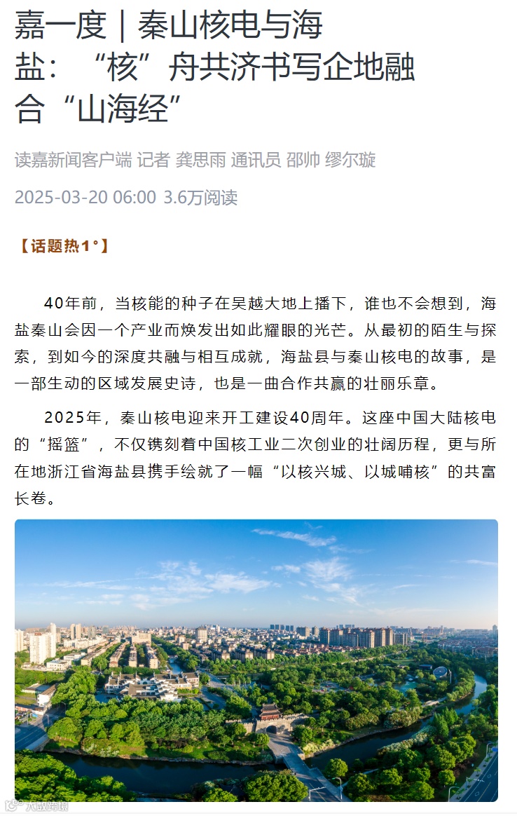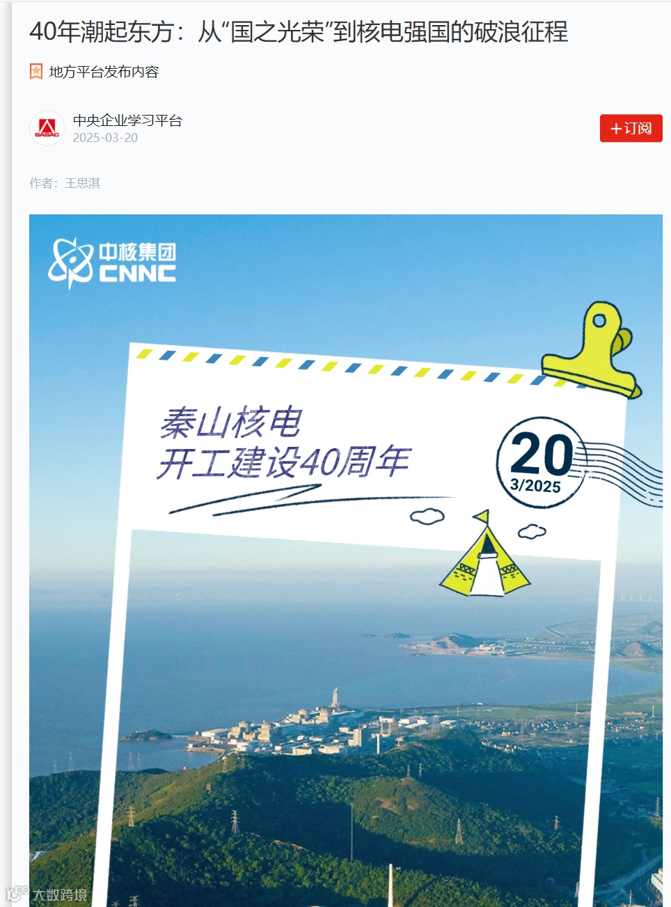 点击蓝字关注秦山核电,看完后点亮在看吧~