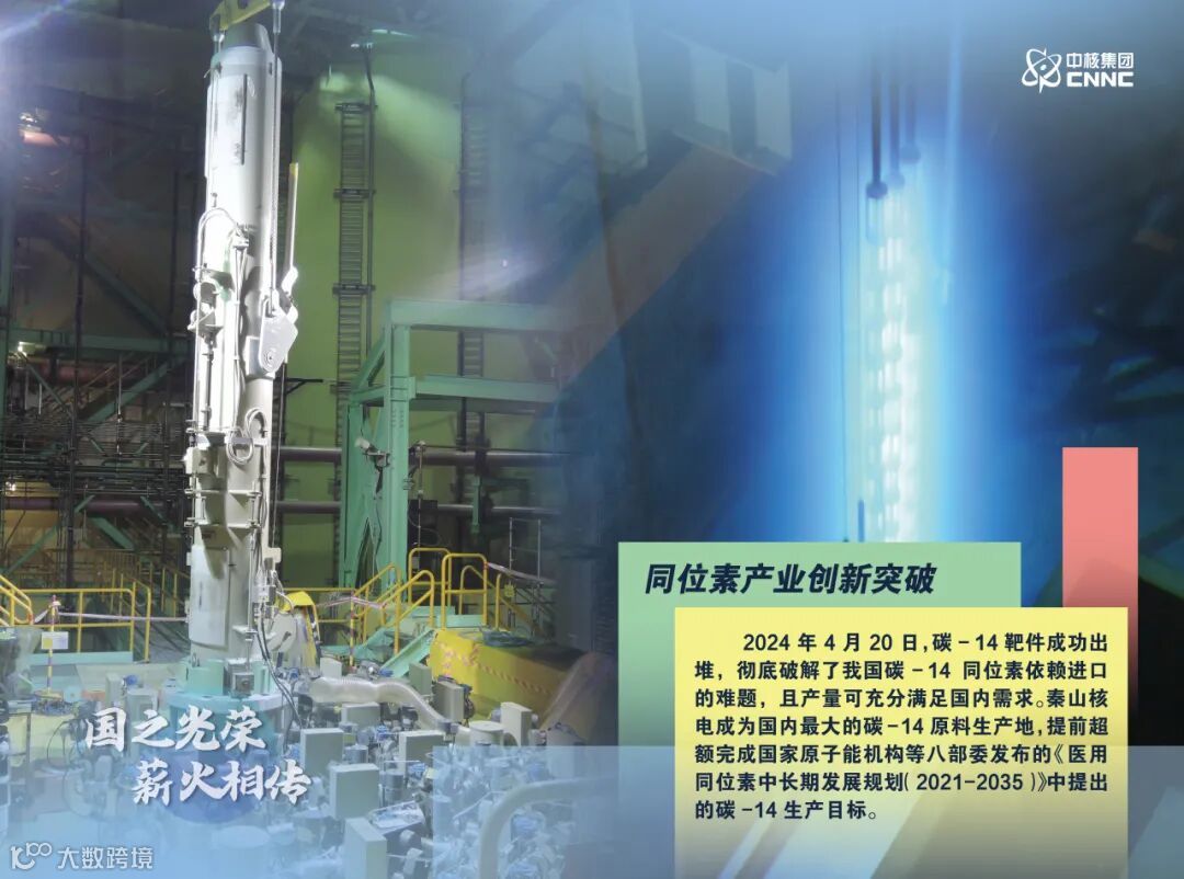 秦山核电作为国内唯一拥有商用重水堆机组的核电基地,积极利用重水堆机组的优势,开展同位素生产研发。目前,钴-60已实现批量化生产,并在新冠疫情防控中发挥重要作用,将医用防疫物资的辐照灭菌时间由两周缩短至1天;2024年4月,全球首批商用堆碳-14靶件顺利出堆,实现碳-14供应全面国产化;2024年12月,我国首个商用堆在线辐照生产同位素装置投运,首批镥-177靶件顺利出堆,一举打破我国关键医用同位素长期依赖进口的局面。同时,秦山核电联合海盐地方共同打造核技术应用产业示范基地。目前,已累计招引落地国内外行业龙头诺华集团、中国同辐、法伯新天等项目23个,总投资超80亿元,达产后预计产值超200亿元。秦山核电将持续深耕堆照同位素辐照生产,为我国医用同位素自主可控供应、核技术多元应用拓展贡献秦山力量,助力建设“健康中国”。