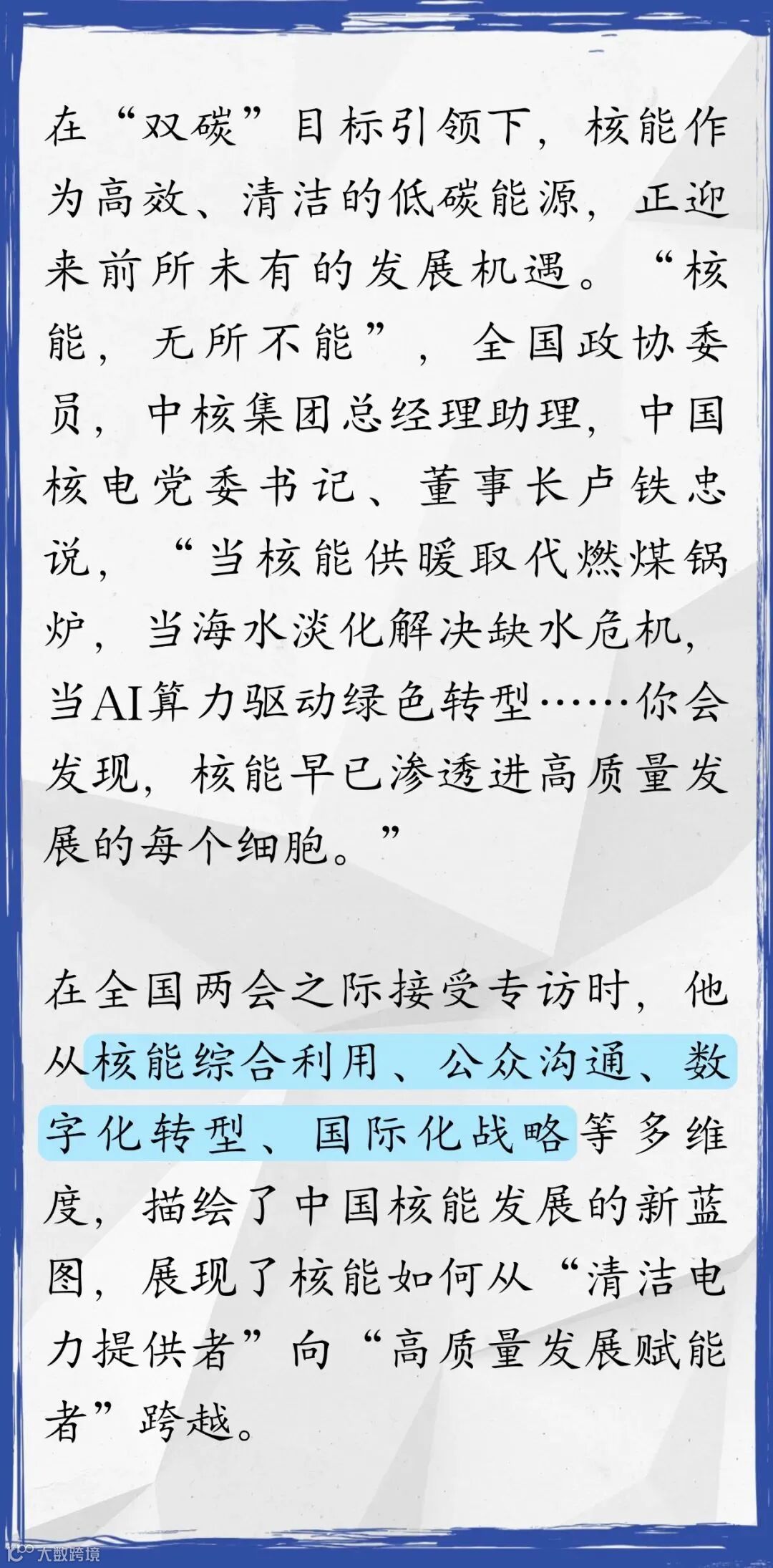 在他眼中,核能不仅是“清洁电力的提供者”,更是“人类可持续发展的同行者”。而实现这一愿景的关键,在于持续创新、真诚对话,以及全社会对绿色未来的共同信念。
