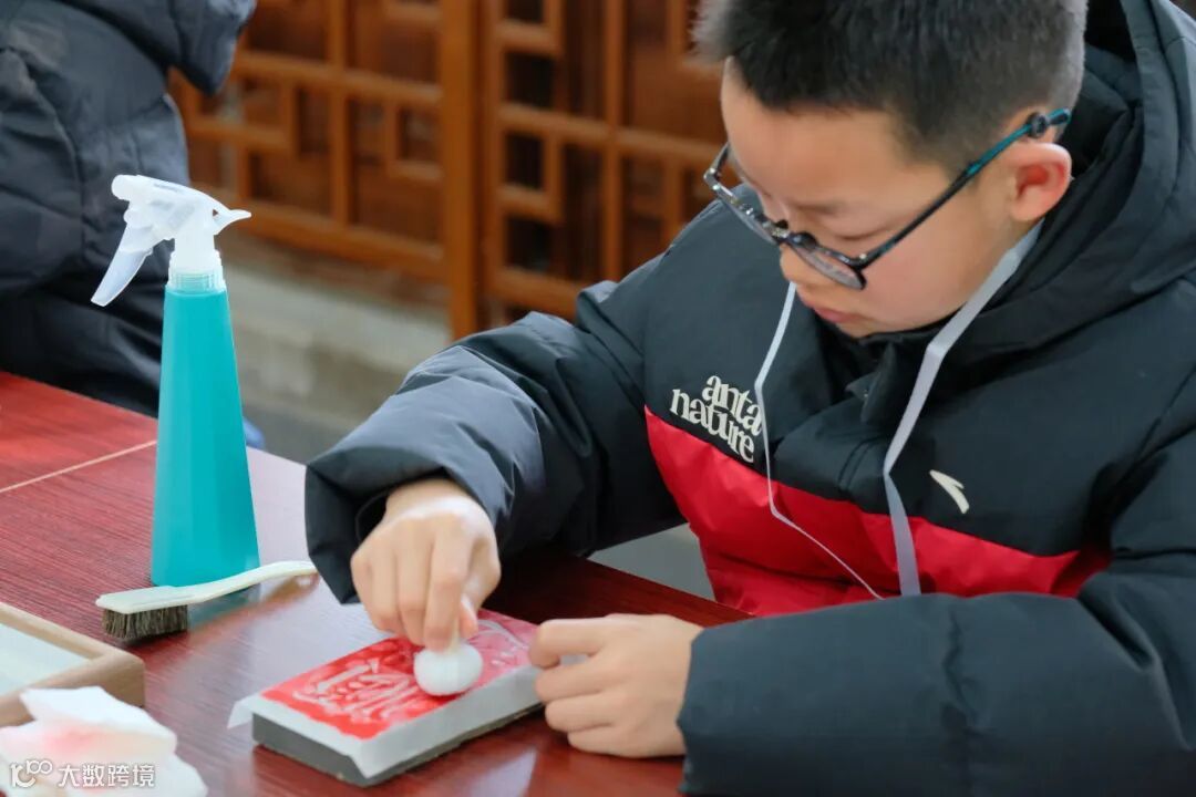 走进非遗技艺课堂,用宣纸与墨汁复刻古碑纹样,触摸历史的肌理。“小秦人”亲手制作了专属拓印作品,在“一扑一拓”间感悟匠人智慧,收藏属于自己的“千年记忆”。