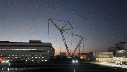 2月9日,秦二厂的夜空被探照灯照得通明。零下5℃的严寒中,2000吨履带吊车的轰鸣声划破寂静——重达317吨的发电机定子正悬于百米高空,像一位踮起脚尖的芭蕾舞者,在技术人员的精准操控下,穿过屋顶。这一刻,国内核电领域首个“整体穿屋顶吊装”纪录就此诞生!