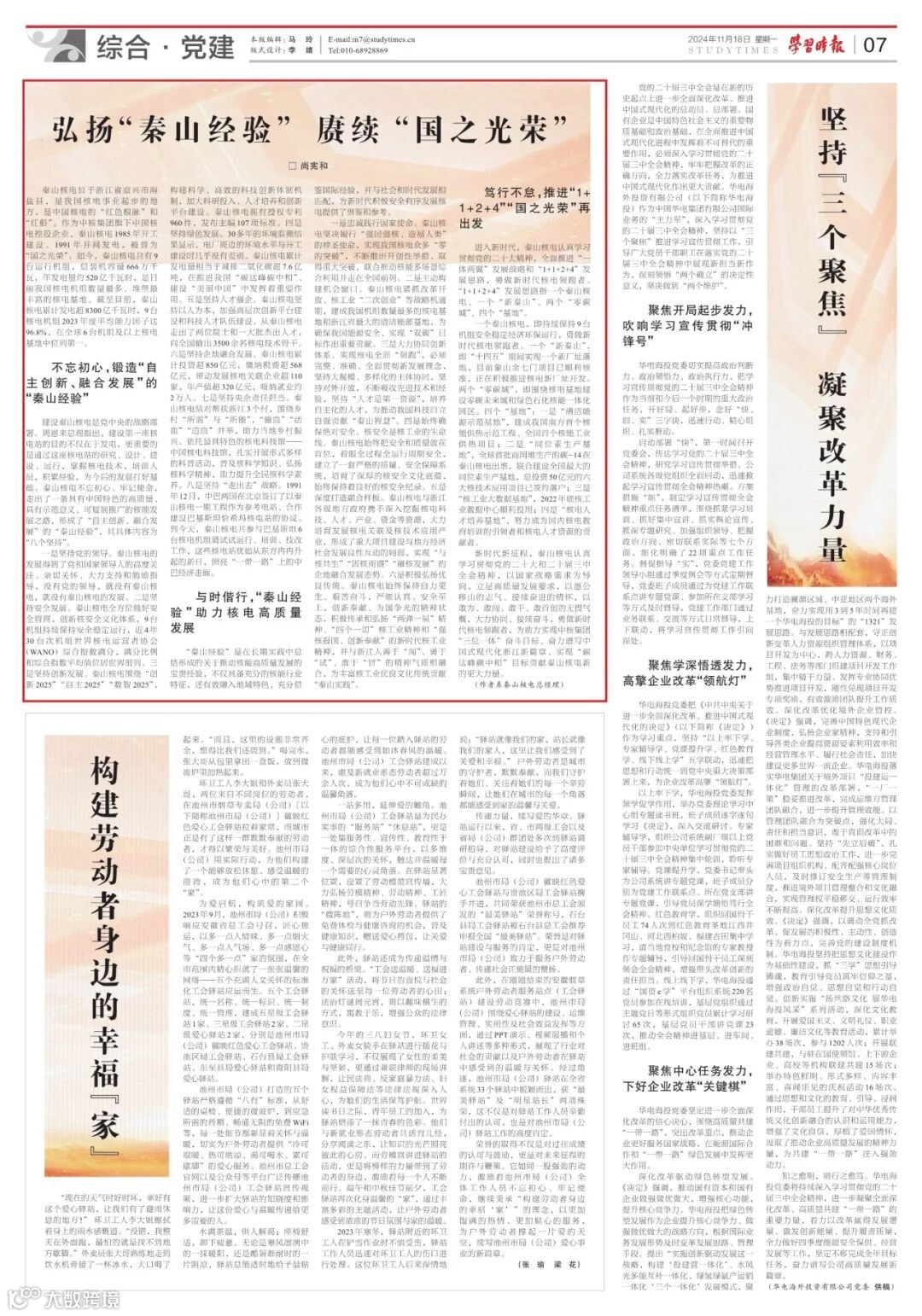 新时代新征程,秦山核电认真学习贯彻党的二十大和二十届三中全会精神,以国家战略需求为导向,立足高质量发展要求,以愚公移山的志气、接续奋进的情怀,以敢为、敢闯、敢干、敢首创的无畏气概,大力协同、接续奋斗,勇做新时代核电领跑者,为助力实现中核集团“三位一体”奋斗目标、奋力谱写中国式现代化浙江新篇章、实现“碳达峰碳中和”目标贡献秦山核电新的更大力量。