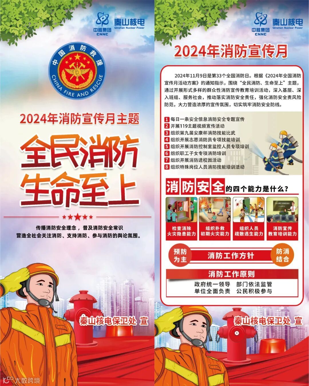 2024年11月是全国第33个消防宣传月,今年消防宣传月主题为“全民消防,生命至上”。为深入贯彻国家、中核集团及中国核电关于加强安全生产工作的系列决策部署,筑牢消防安全防线,近日,秦山核电开展一系列精彩的消防主题活动,切实提升全员消防安全意识,提高公司消防安全管理水平。