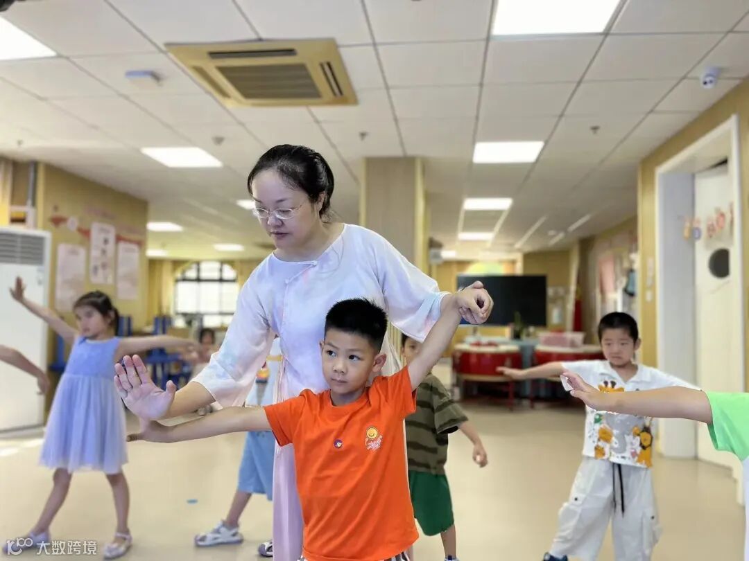 瞧!站桩、出掌、冲拳……孩子们兴致勃勃地练习,一招一式都模仿得有模有样!