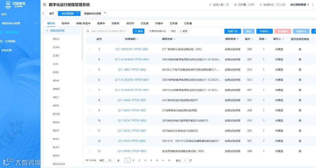 中国核电数字运行规程管理平台是中国核电标准化2.0建设的重要支撑项目,是中国核电板块内统一的产品级数字化运行规程管理平台。通过统一规划、统一设计,平台可实现运行规程的标准化、集中部署和统一管理,有效满足中国核电集约化管控的需要。