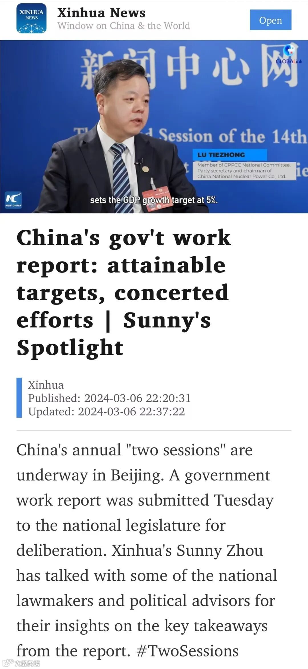 全国政协委员,中国核电党委书记、董事长卢铁忠:时刻保持如履薄冰的心态守护核电安全