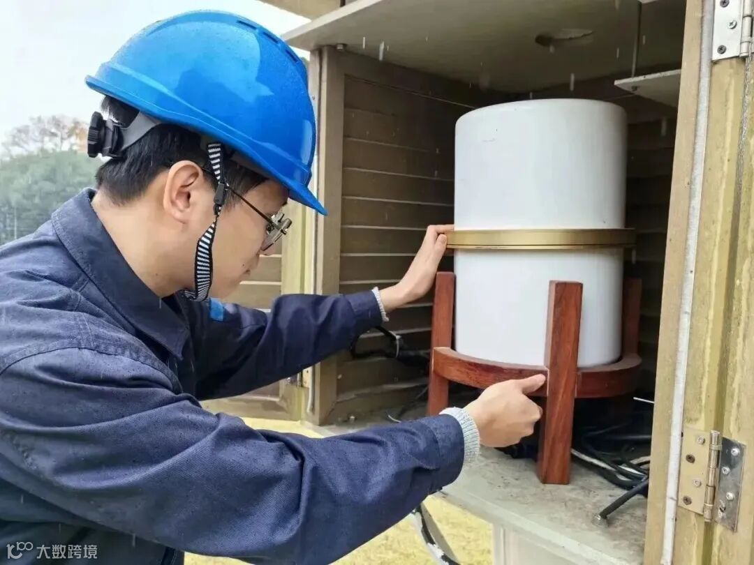 ▲图为环境应急处杨臻对野外环境监测设施设备进行检查,确保能够在极端天气条件下正常运行