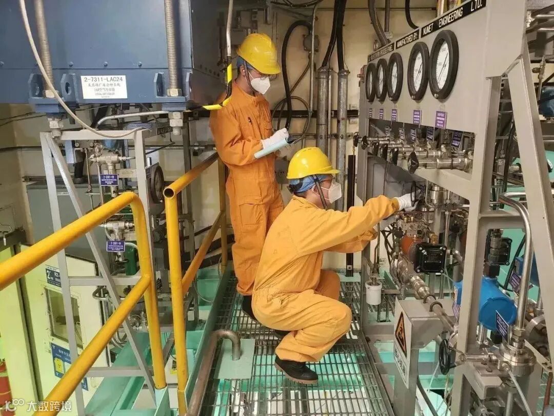 ▲图为燃料操作处冯一、魏佳星在建立安全隔离边界,确保设备检修和系统安全