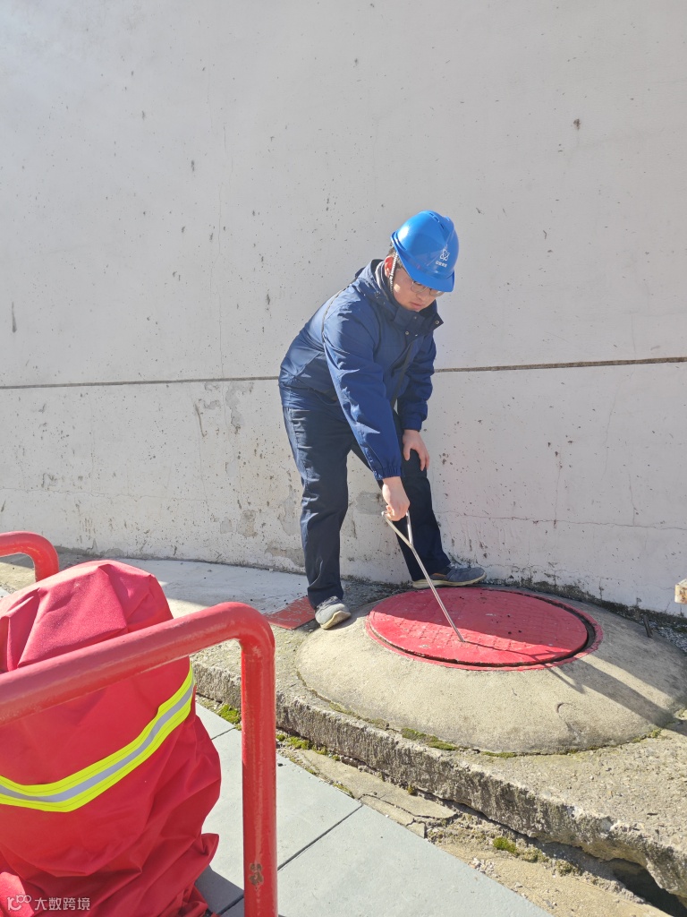 ▲图为运行一处楼中烨在秦一厂保护区内开展消防水管网查漏
