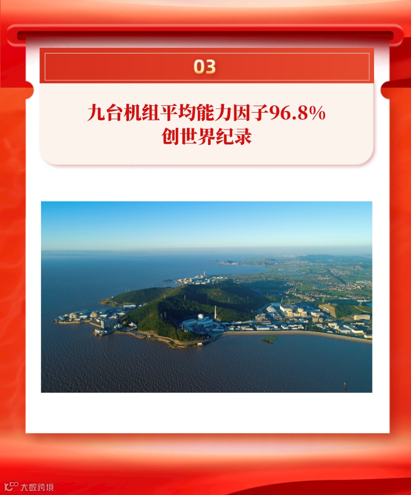 2023年,秦山核电在安全发电方面取得卓越成绩,9台核电机组年度平均能力因子达到96.8%,根据世界核电运营者协会(WANO)已有公布数据,该业绩在全球6台机组及以上核电基地中位列第一,创造了同类基地安全稳定运行的新纪录。