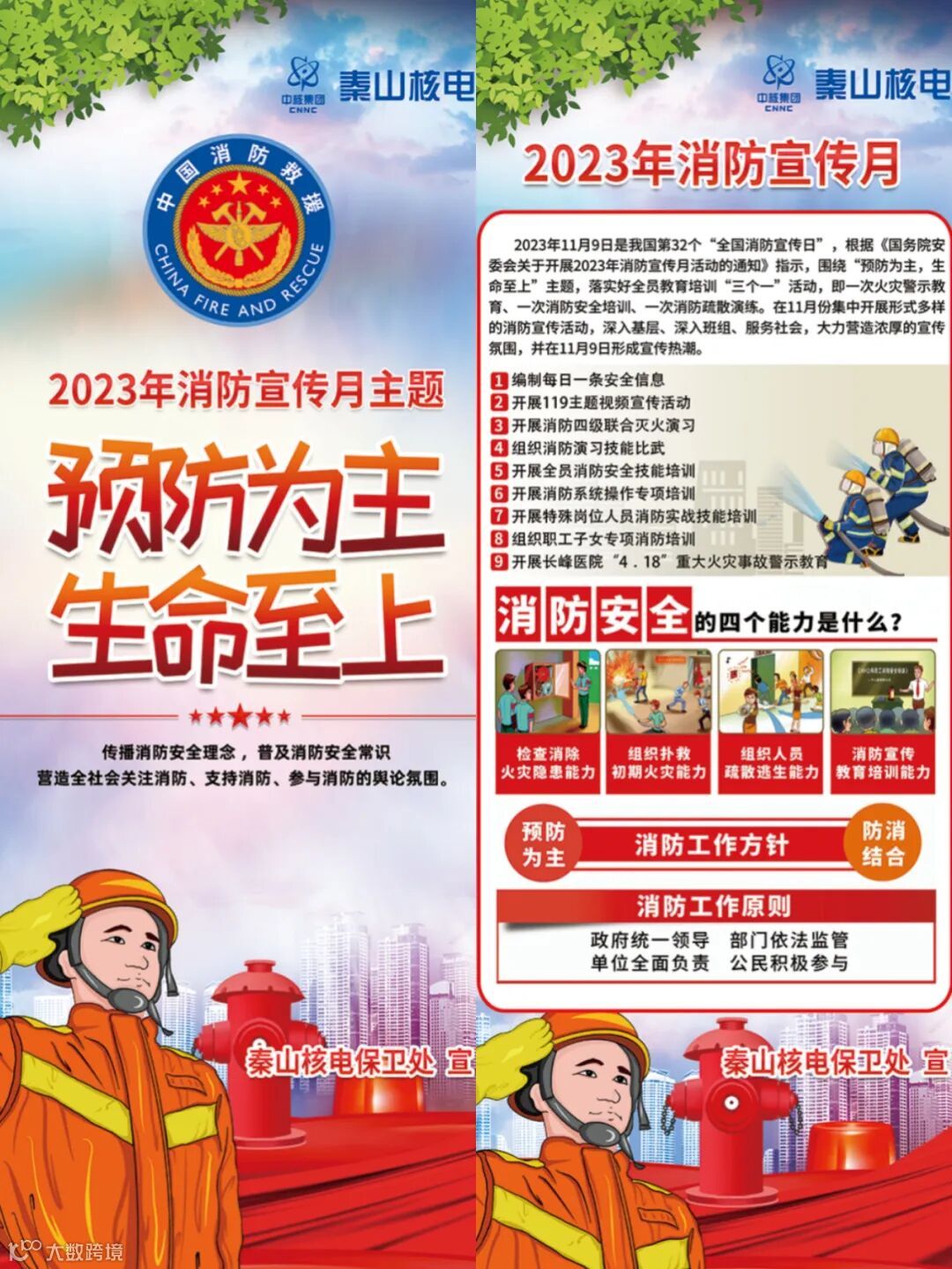 2023年11月是全国第32个消防宣传月,11月9日是第32个全国消防日,今年消防宣传月主题为“预防为主,生命至上”。