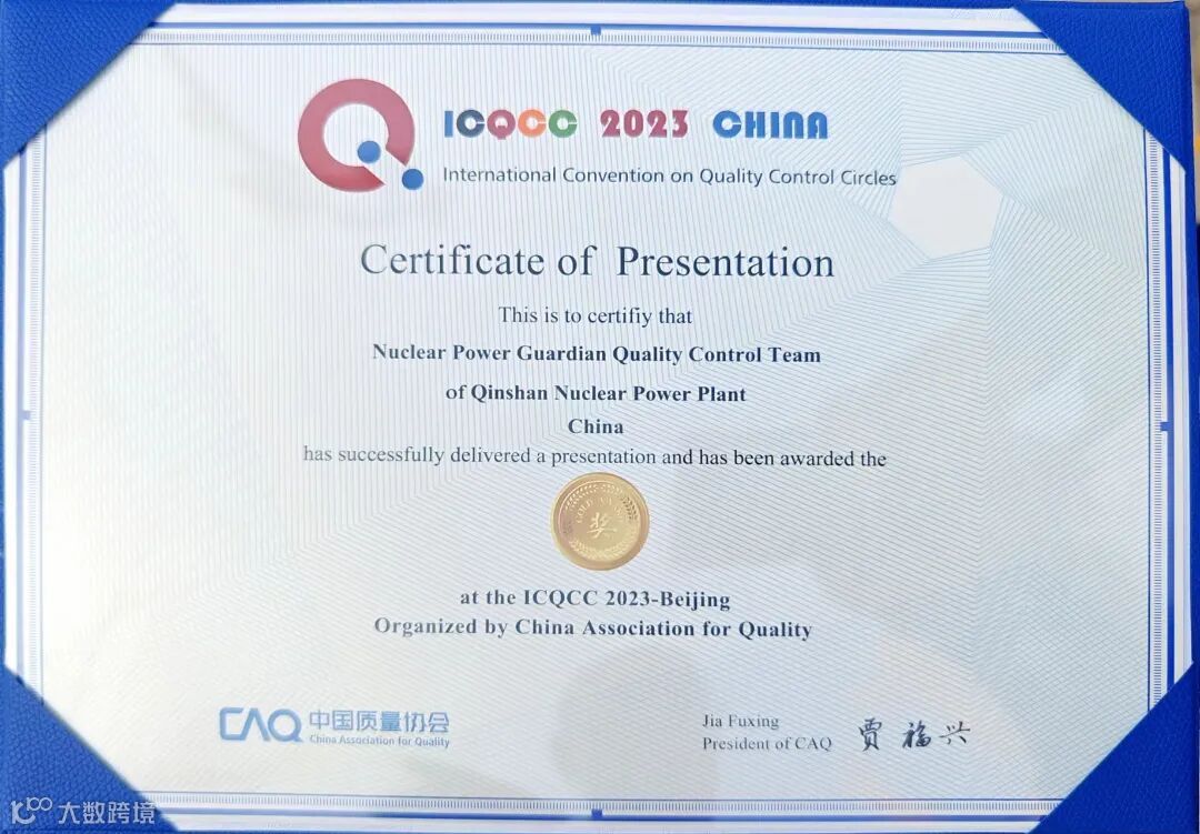 近日,第48届国际质量管理小组大会(ICQCC)在中国北京举行。秦山核电“核电卫士QC小组”成果《减少方家山周界探测误报警次数》和“U盾QC小组”成果《减少秦二厂3/4号机组反冲洗泵故障次数》参加本次发布赛,双双夺得金牌,这是秦山核电自2019年以来,第五次站上国际舞台并拿下了“质量奥林匹克”的最高荣誉。