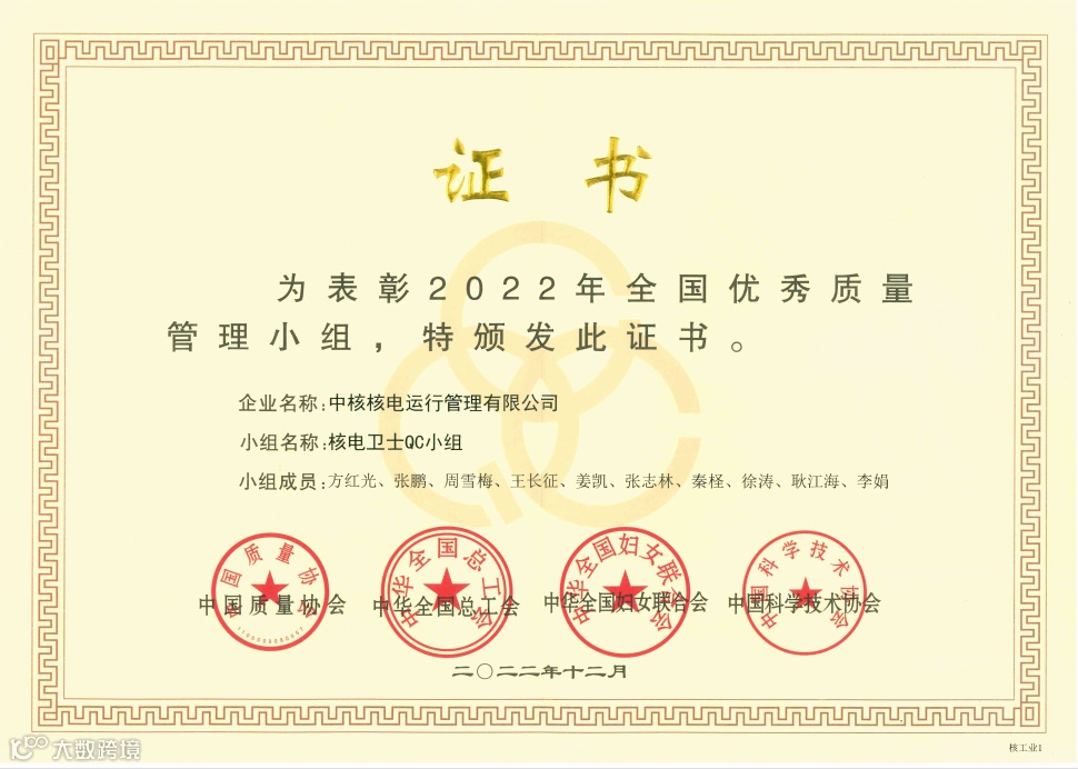 近日,从中国质量协会传来好消息,秦山核电“核电卫士QC小组”“U盾QC小组”“仪表一班第一QC小组”荣获“2022年全国优秀质量管理小组”称号,这是秦山核电首次同年度内荣获3项“国优”。