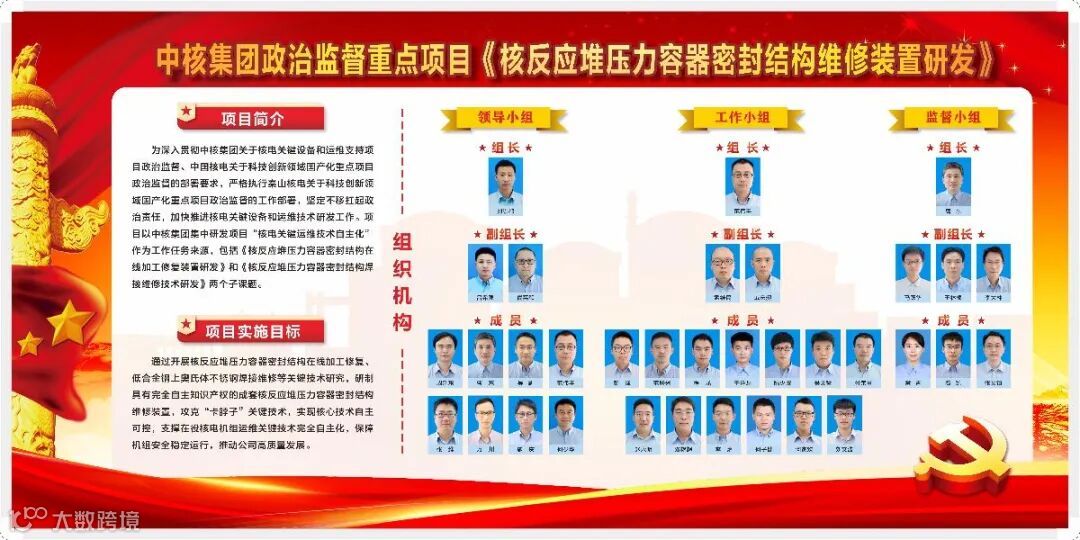 党的二十大报告中指出,要“加快实施创新驱动发展战略,加快实现高水平科技自立自强,以国家战略需求为导向,集聚力量进行原创性引领性科技攻关,坚决打赢关键核心技术攻坚战”,秦山核电认真贯彻落实党的二十大精神,严格执行中核集团关于核电关键设备和运维支持项目政治监督、中国核电关于科技创新领域国产化重点项目政治监督的工作部署,坚定不移扛起政治责任,坚持党建引领,强化组织保障,如期高效完成核电关键运维技术自主化项目科研攻关,勇做新时代核电领跑者,助力我国核电产业高质量发展。