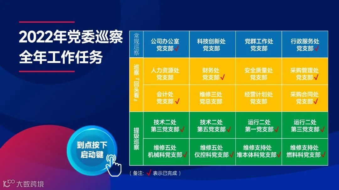 坚持管理标准化,做到数据说话。秦山核电党委以项目管理方式统筹全年300个巡察任务点,梳理年度关键词50个,开发标准化问卷和9维度“回头看”可视评价体系,做到正向牵引和横向可比。