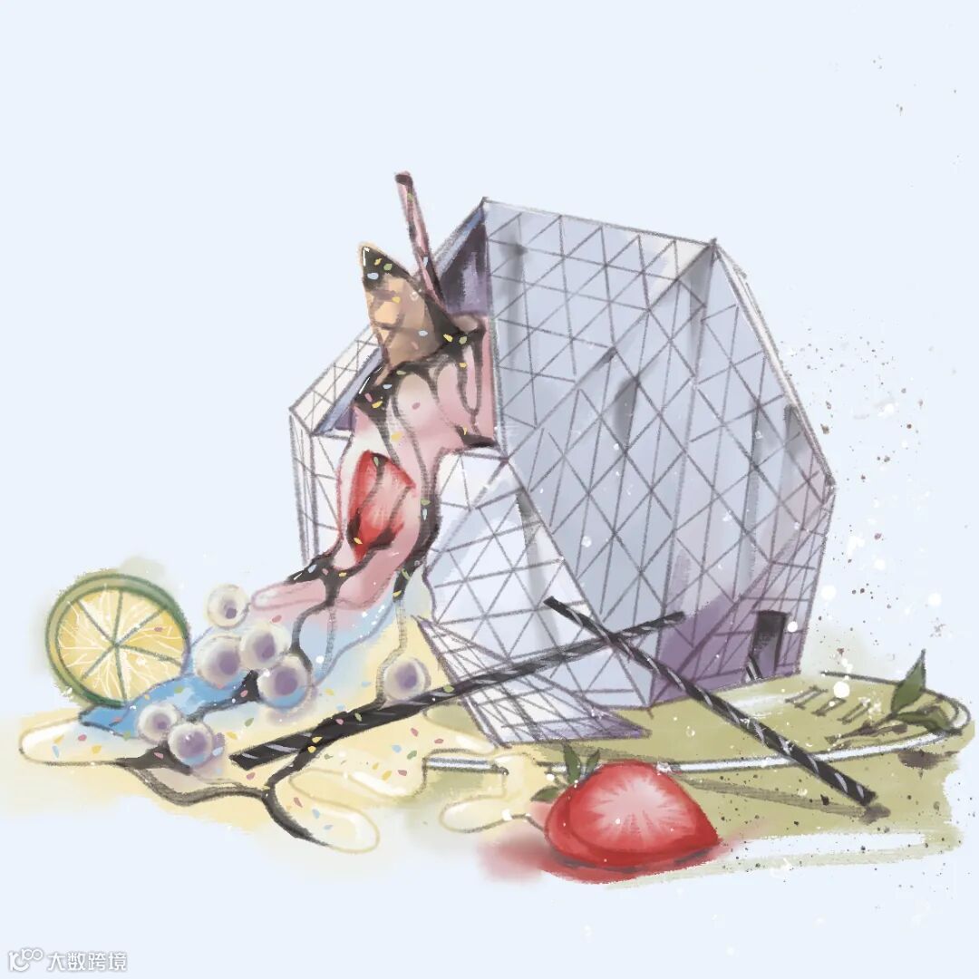 不规则的轮廓凝聚成冰晶般的形体