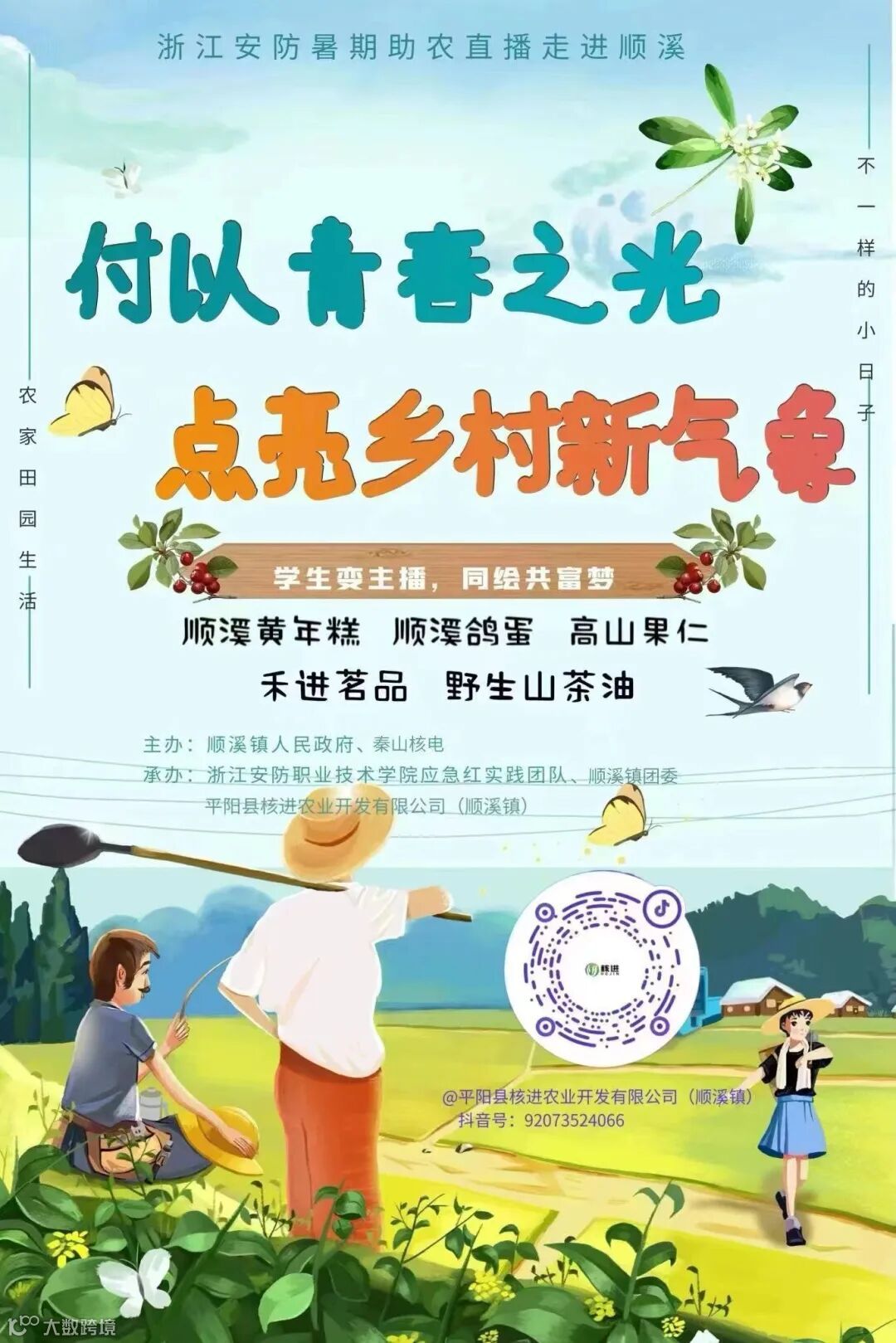 2021年7月,秦山核电帮扶工作组为更好推广顺溪旅游和“平阳五个鲜+N”农副产品,带动有劳动能力的低收入农户增收,组织在“淘宝”“微商”“拼多多”等多个平台创办网店,为进士村振兴致富打开一扇崭新窗口。