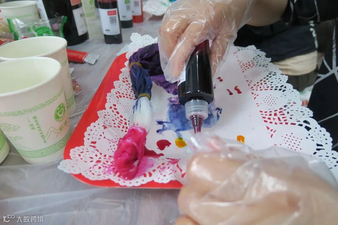 参加了女工丝巾扎染手工制作活动,自己动手制作了世界上独一无二的小丝巾。当古老而神奇的彩色扎染法,遇见高贵秀美的丝绸,会产生怎样的奇妙反应?活动中,老师教大家做冷染,分为螺旋式、同心圆、菱形染三种方法,大家根据自己的喜欢,做了不同形式的扎染。涂色也是大胆发挥,忠于内心,涂出靓丽。看着一块块亲手染成,色彩缤纷,花色图案各异的丝巾,大家都美滋滋的,沉浸在缤纷的色彩中。
