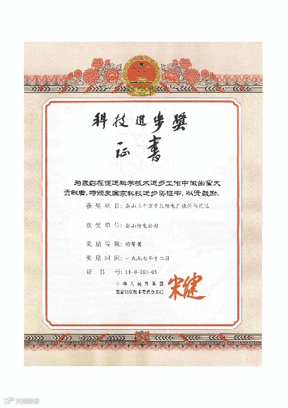 国家级5项:如《秦山三十万千瓦核电厂设计与建造》获国家科技进步特等奖;《秦山600MWe核电站设计与建造》获国家科技进步一等奖
