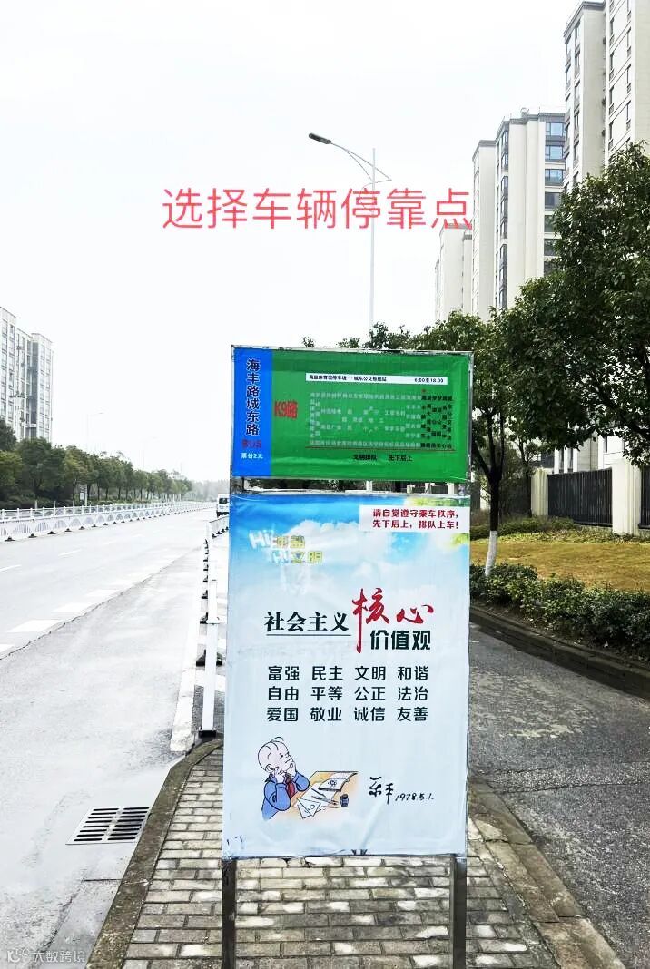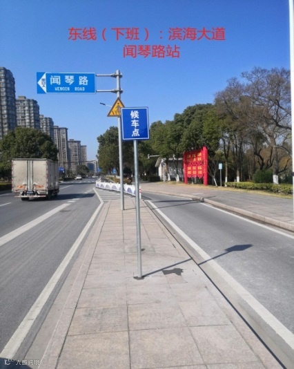 5、非公交停靠点包括:东线上班线路滨海大道城北路口站;东线下班线路滨海大道闻琴路站、滨海大道柏林公馆站,停靠点标牌如下: