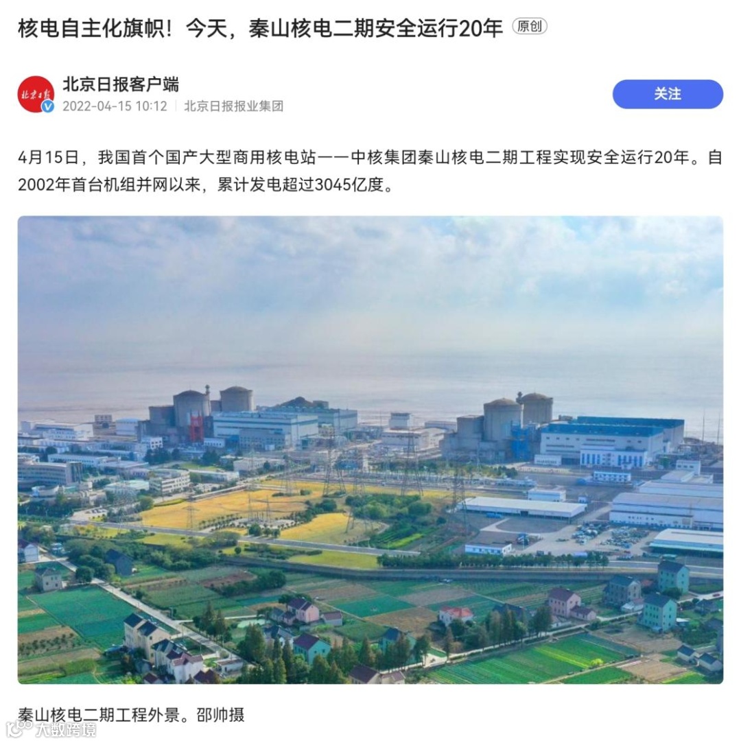 竞相报道秦山核电这一历史性时刻!