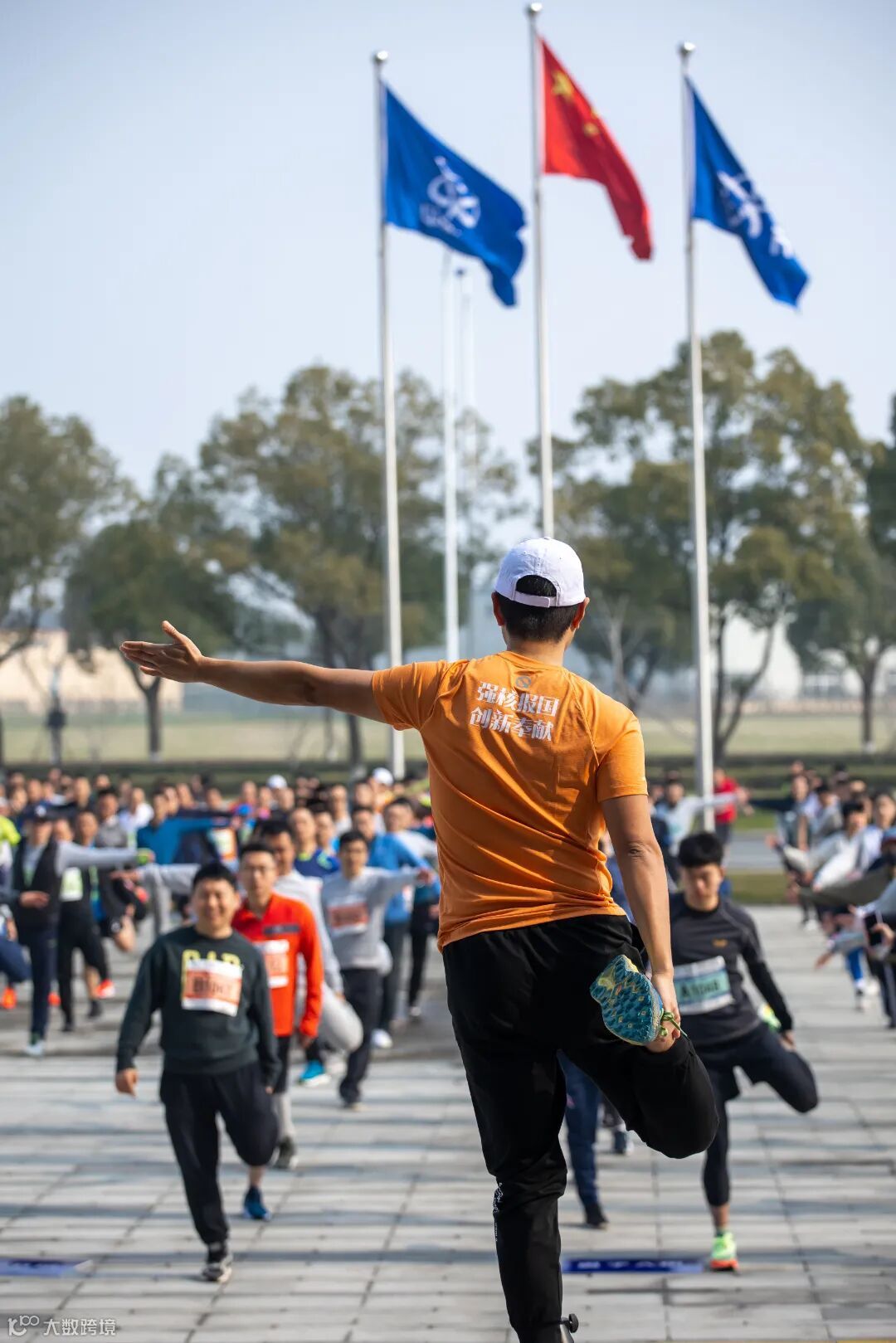 在工作人员带领下,全体运动员进行了热身准备。9点10分,随着发令枪响,7个组别的300多名参赛员工向着终点进发。
