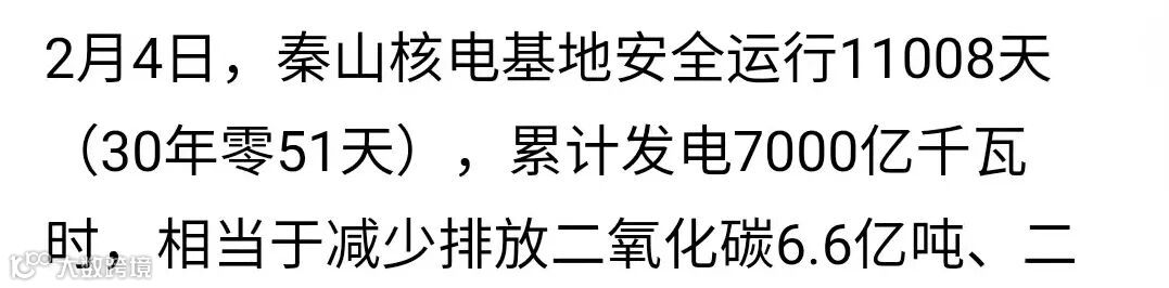2月4日晚,浙江卫视《浙江新闻联播》播出《秦山核电基地累计安全发电7000亿千瓦时》。