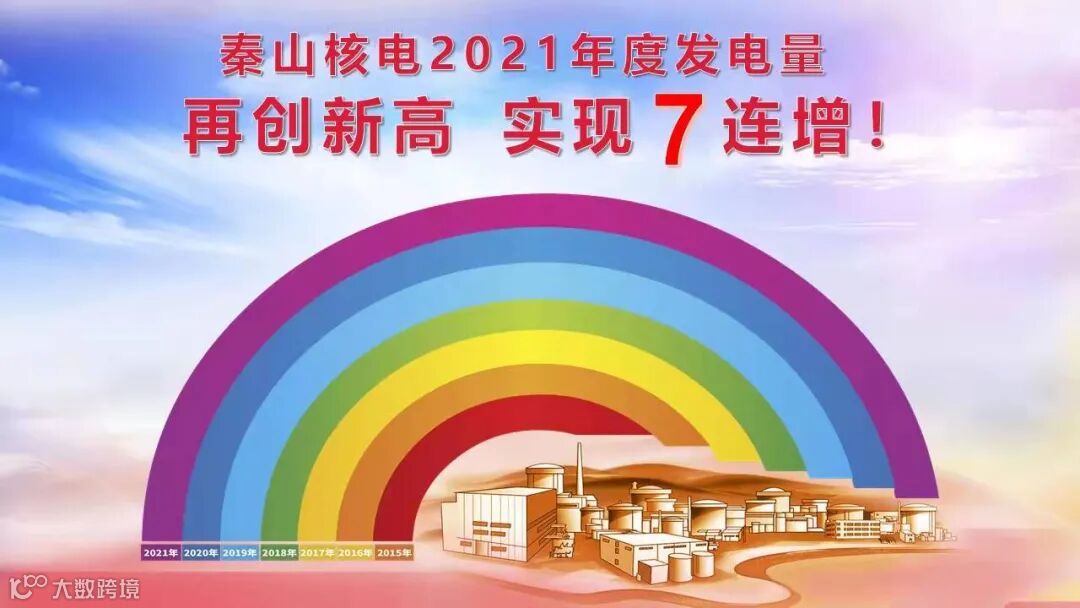 2021年,秦山核电全年累计发电量再创历史新高,实现自全面建成投产以来的年度电量“七连增”,能力因子和负荷因子创造了连续5年实现双“90”的卓越运行业绩。秦山核电已累计安全运行141.04堆年,为社会持续输送绿色电力超6900亿千瓦时,减少燃烧标准煤2.18亿吨,减少二氧化碳排放约6.55亿吨,相当于植树造林约435个西湖绿地,经济和社会效益成果斐然。