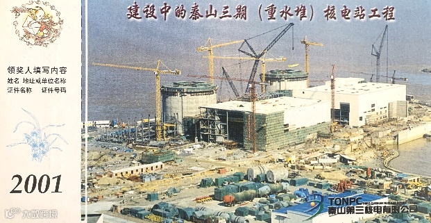 ▼2001.12.15,秦山核电站建成并网十周年明信片