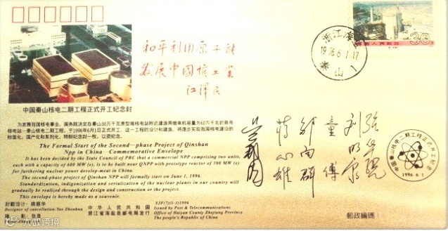 ▼1996.6.1,秦山核电二期工程正式开工纪念封