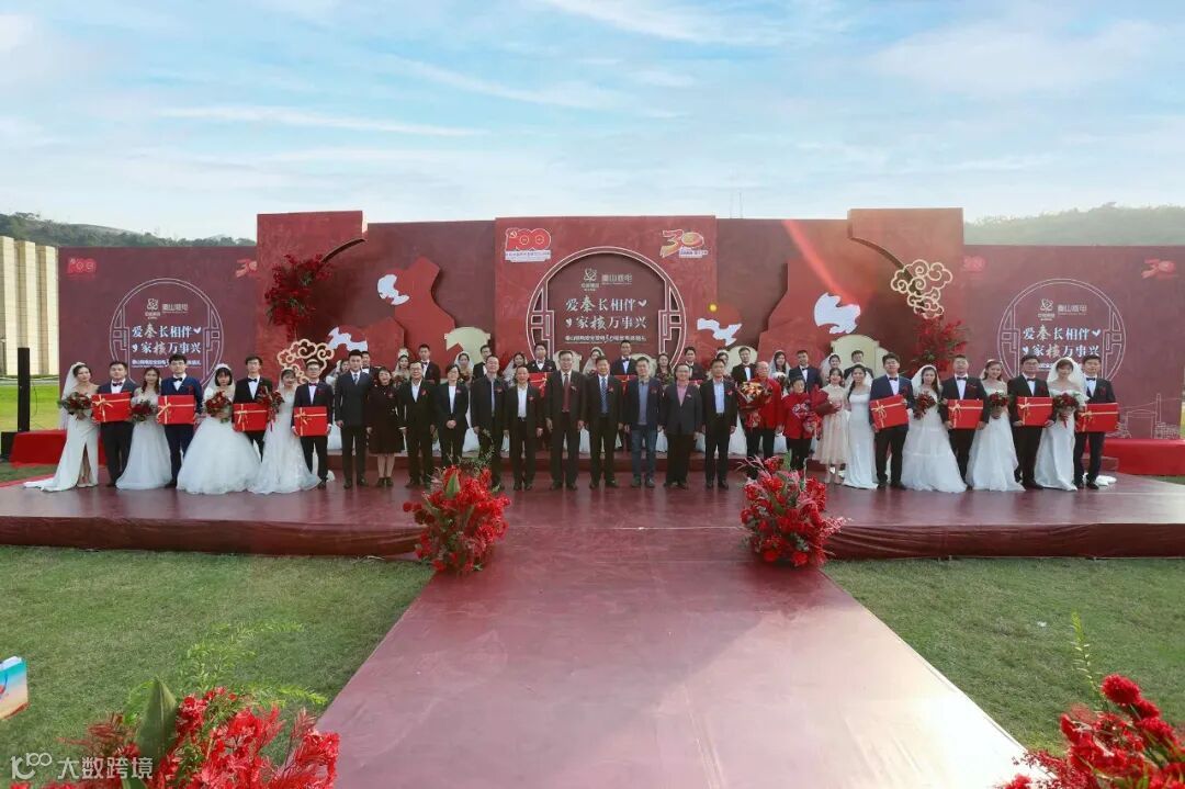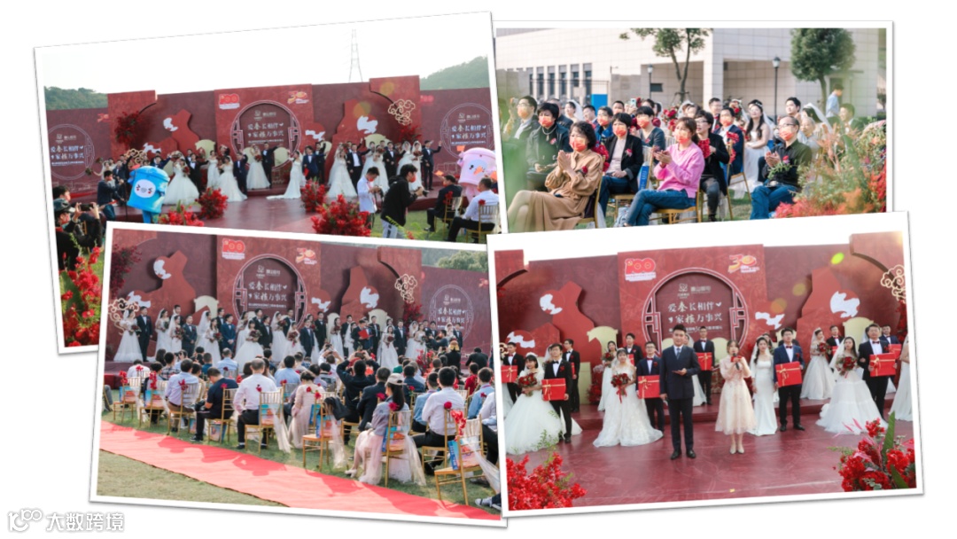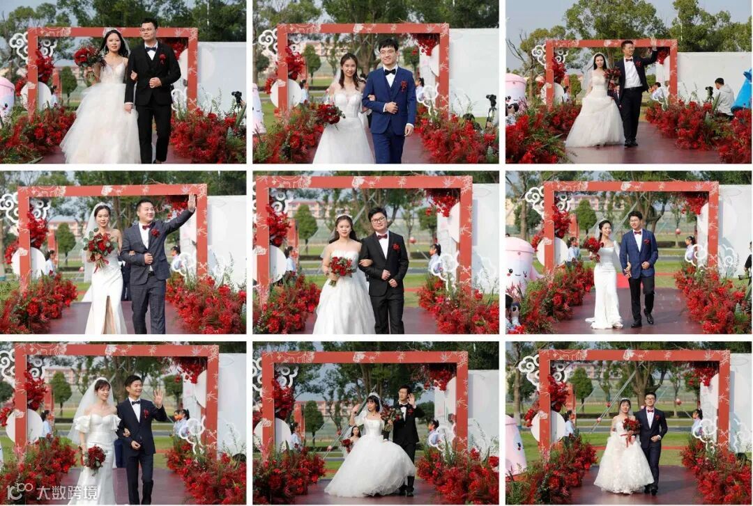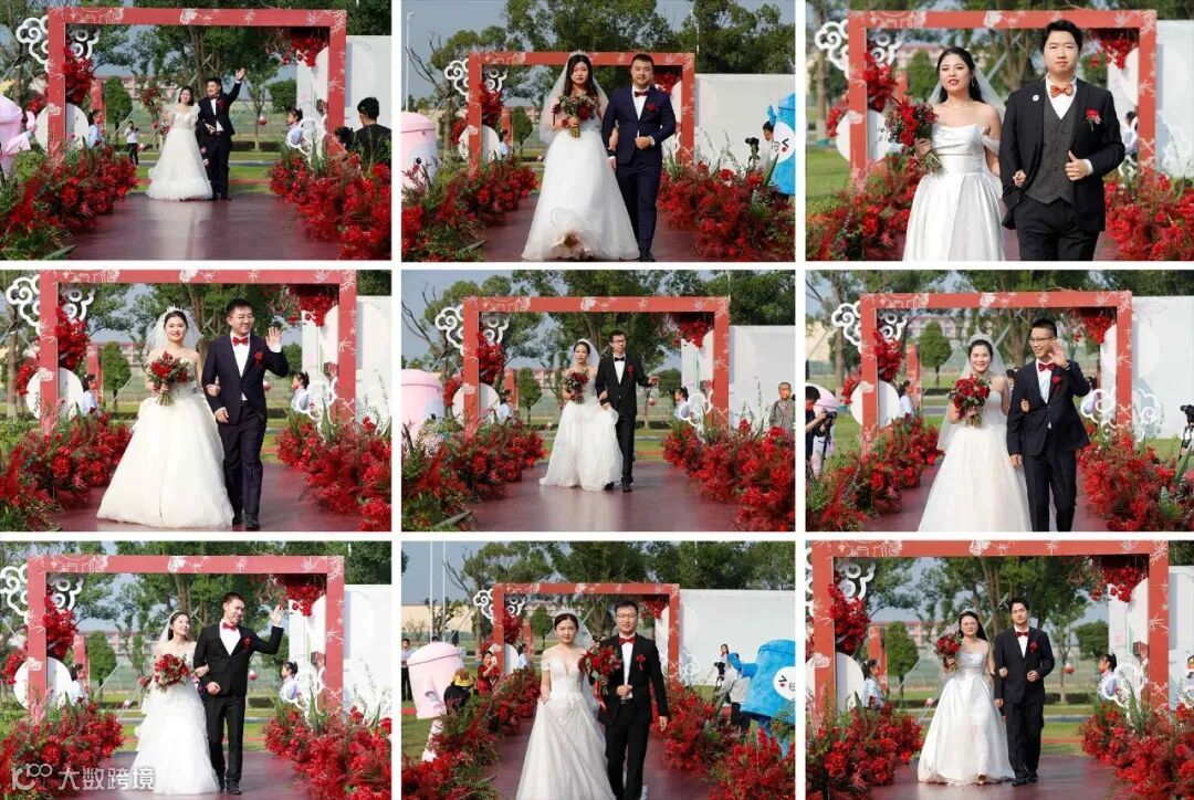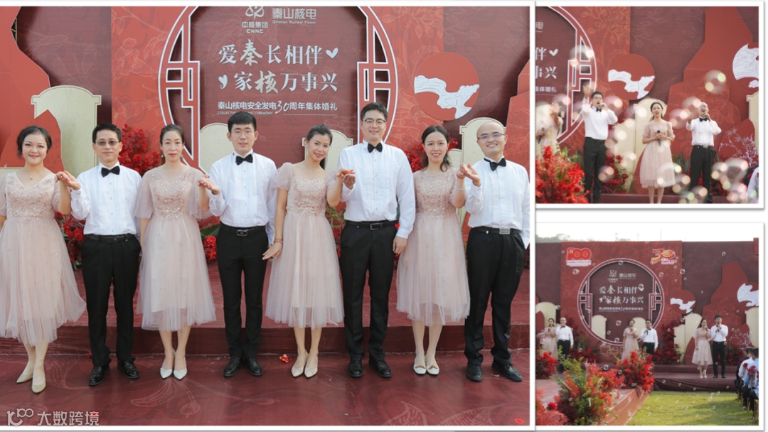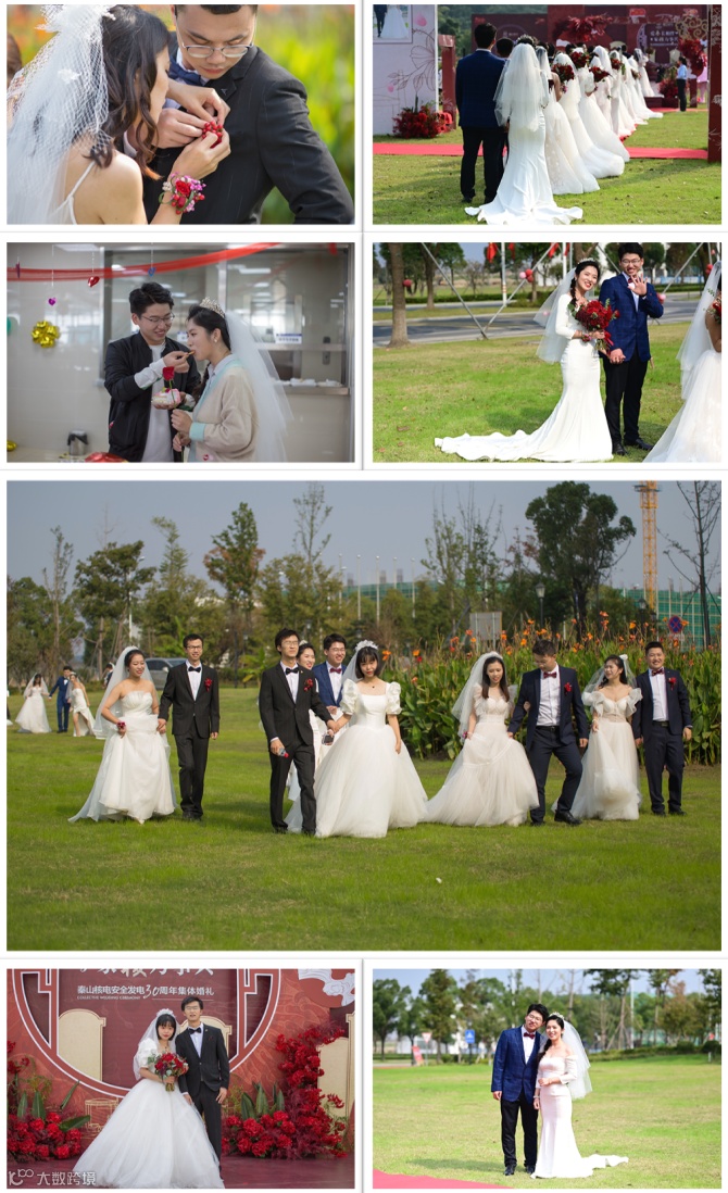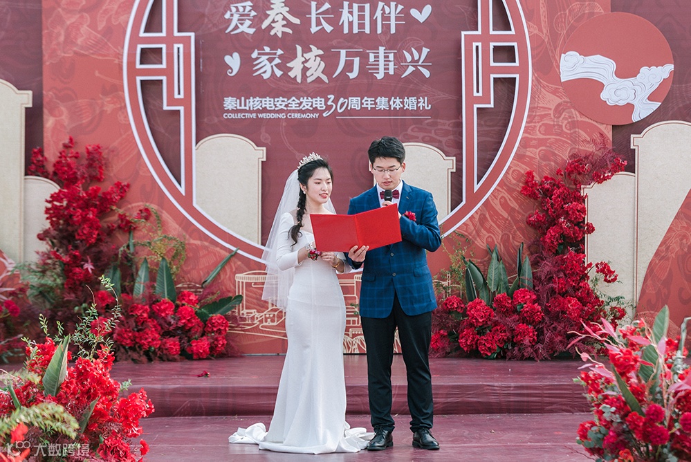 婚礼仪式隆重而温馨,18对核电新人伴随着音乐依次走上T台,他们中间,有的从校服走向婚纱,有的在工作中相识、相知、相爱,有的经历了异地的等待与相守。