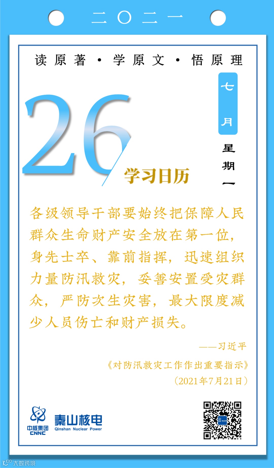 7月26日,秦山核电青年的《学习日历》