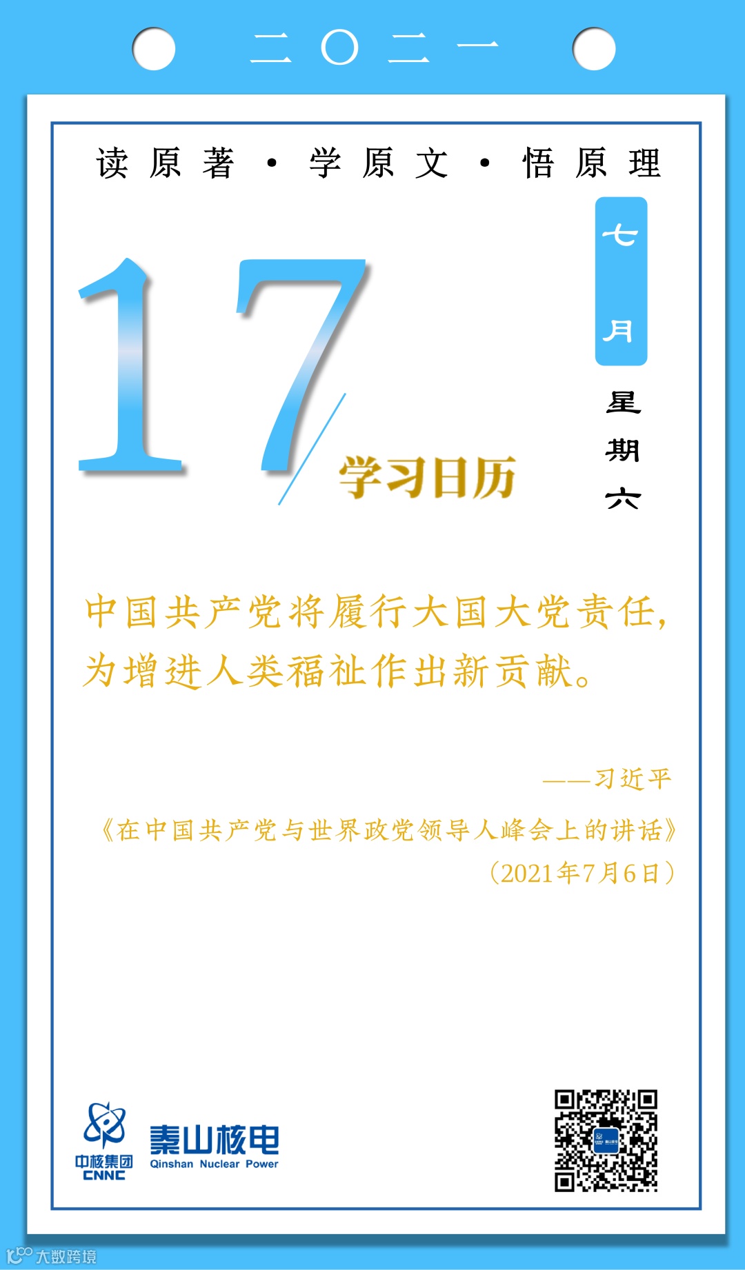 7月17日,秦山核电青年的《学习日历》