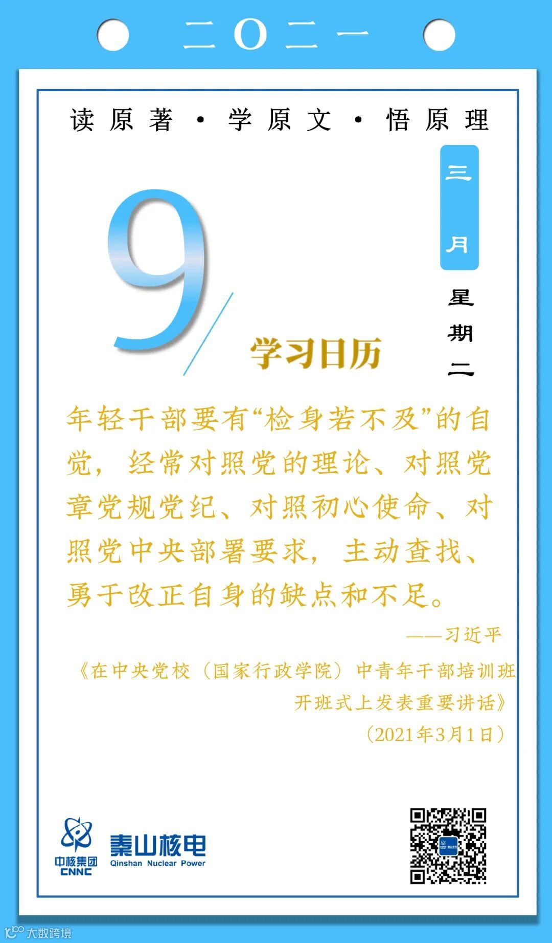 3月9日,秦山核电青年的《学习日历》