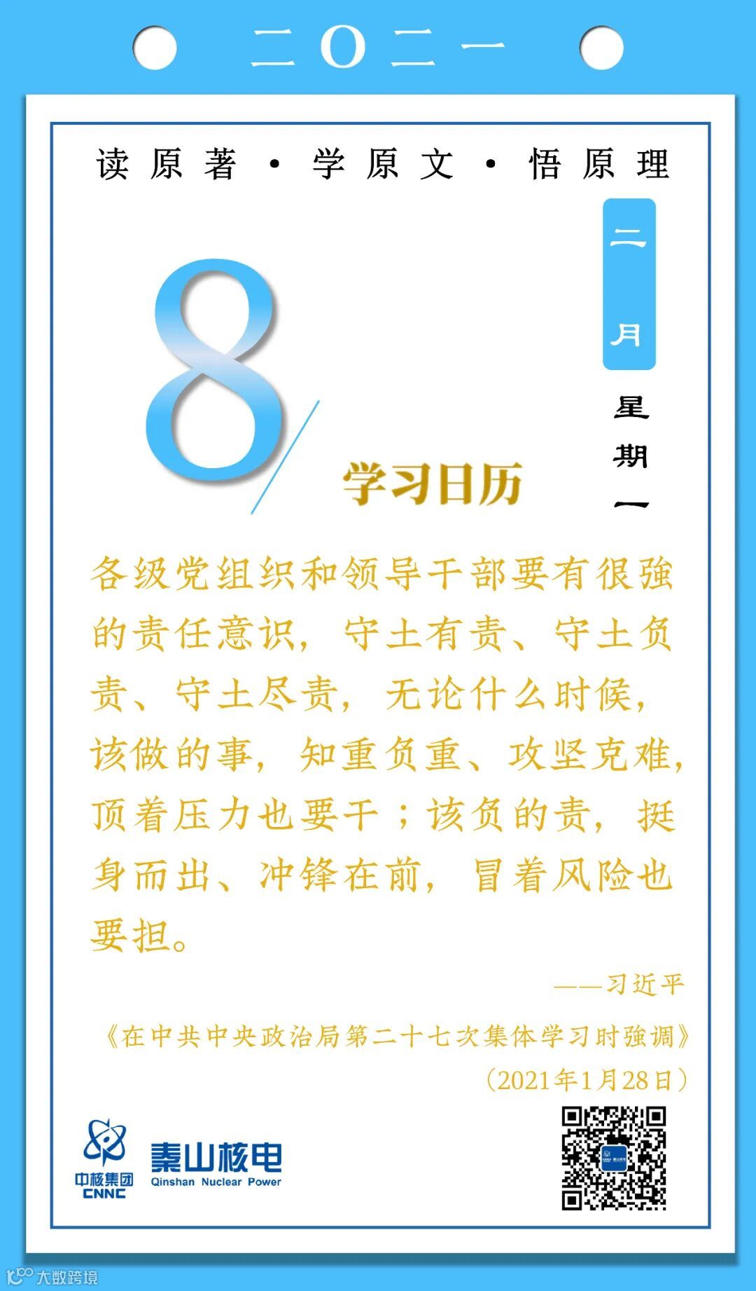 2月8日,秦山核电青年的《学习日历》