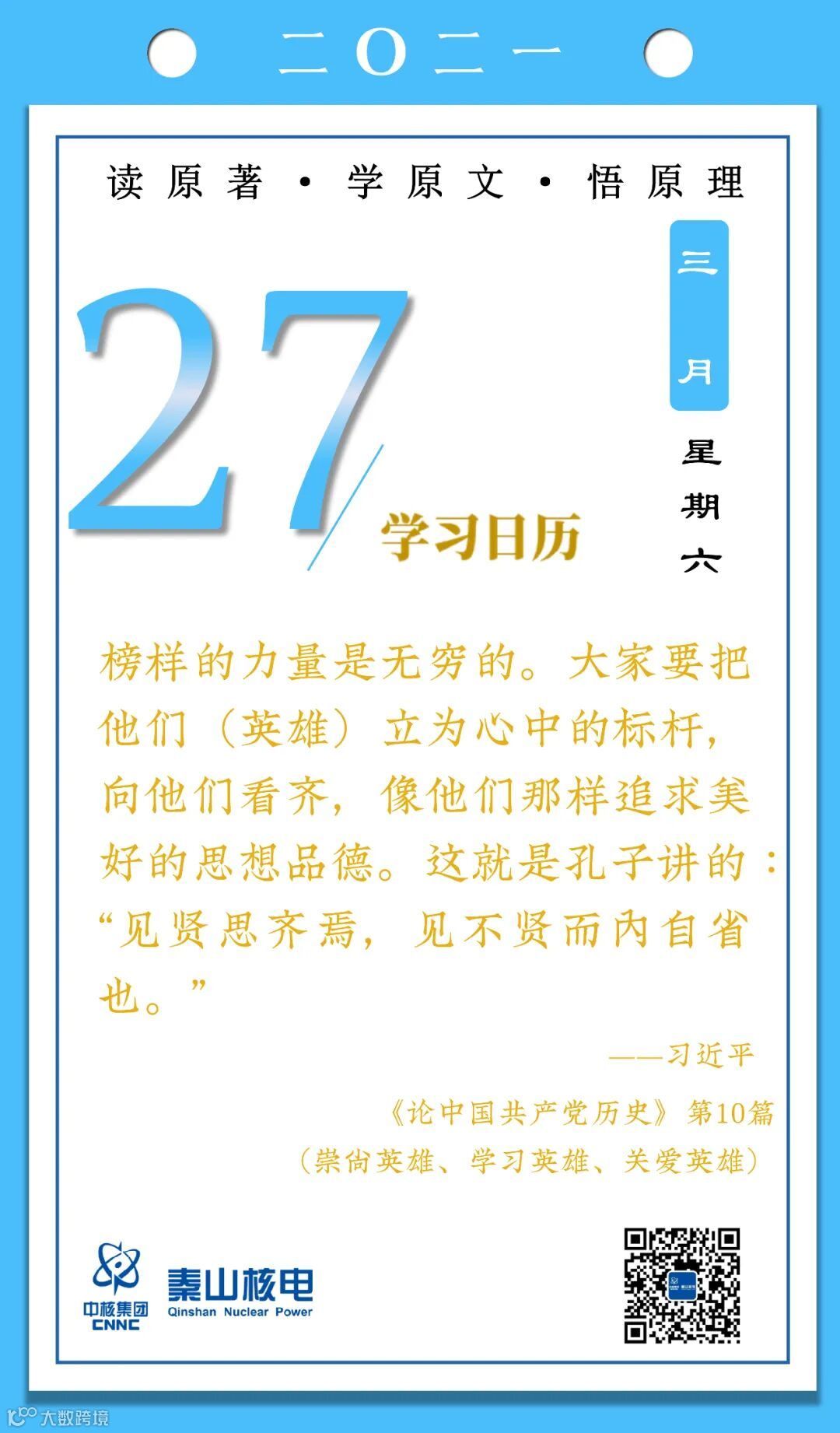 3月27日,秦山核电青年的《学习日历》