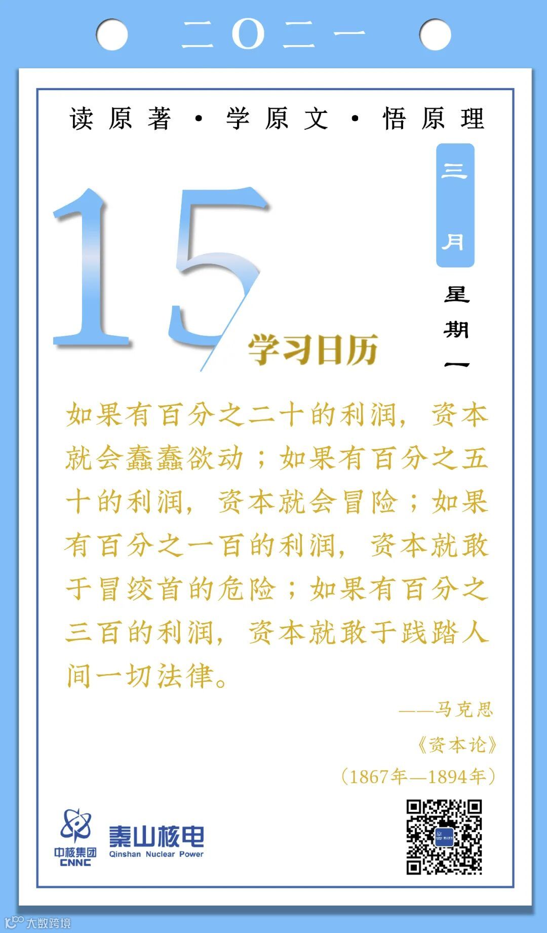 3月15日,秦山核电青年的《学习日历》