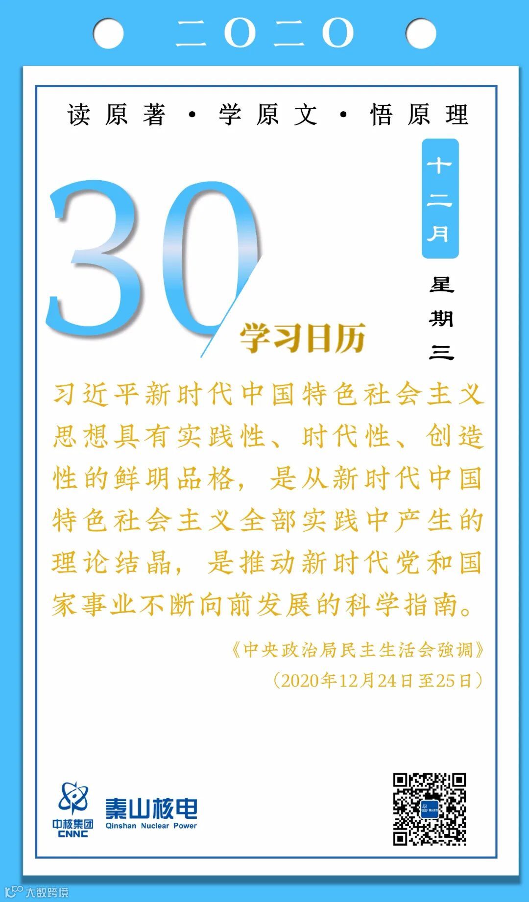 12月30日,秦山核电青年的《学习日历》