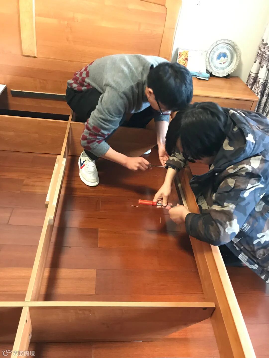 杨彭城和王强在更换完餐桌玻璃后,主动开始检查卧室的床架,搬开床垫发现是有几颗螺钉有些松动,一根支撑条已经脱落。杨彭城和王强随即开始细细排查和紧固,三下五除二就解决了床架晃动的问题。