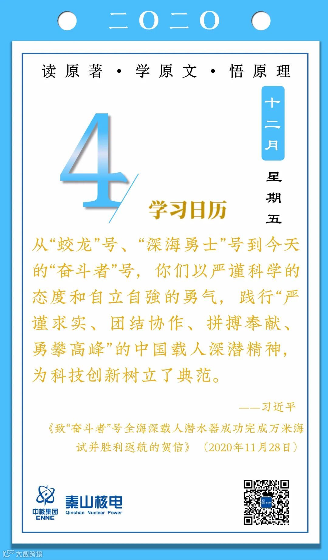 12月4日,秦山核电青年的《学习日历》