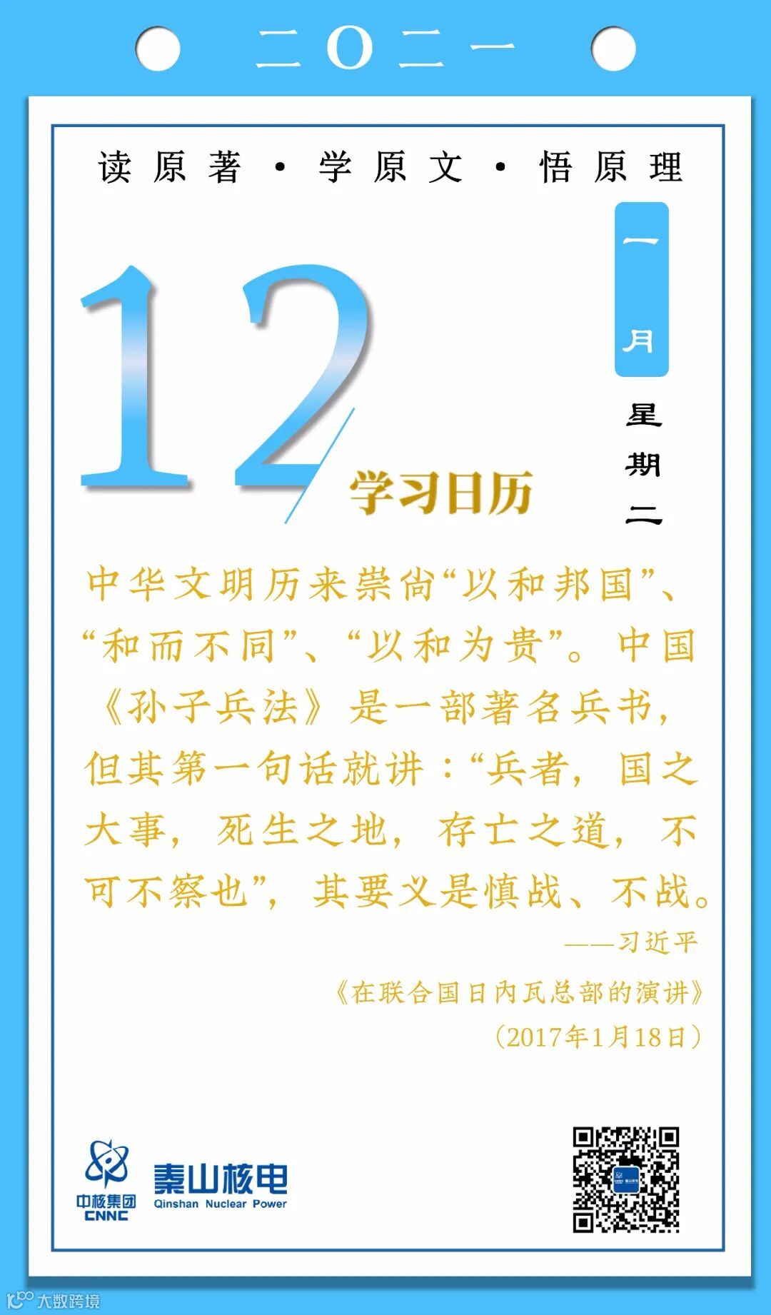 1月12日,秦山核电青年的《学习日历》