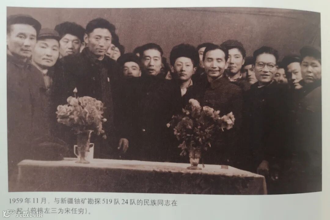 《纪念宋任穷诞辰一百周年——宋任穷画传》里有几张照片,展示了时任核工业第一任部长的宋任穷于1959年11月到白杨河矿点检查工作的情形。当时,为了重抓铀矿工作,他经常跟随地质队出没于戈壁沙漠,爬山涉水,风餐露宿,几乎全国所有的铀矿地质勘探队作业点,都出现过他的身影。他的足迹甚至到达过新疆最偏远的地方——阿尔泰地区。