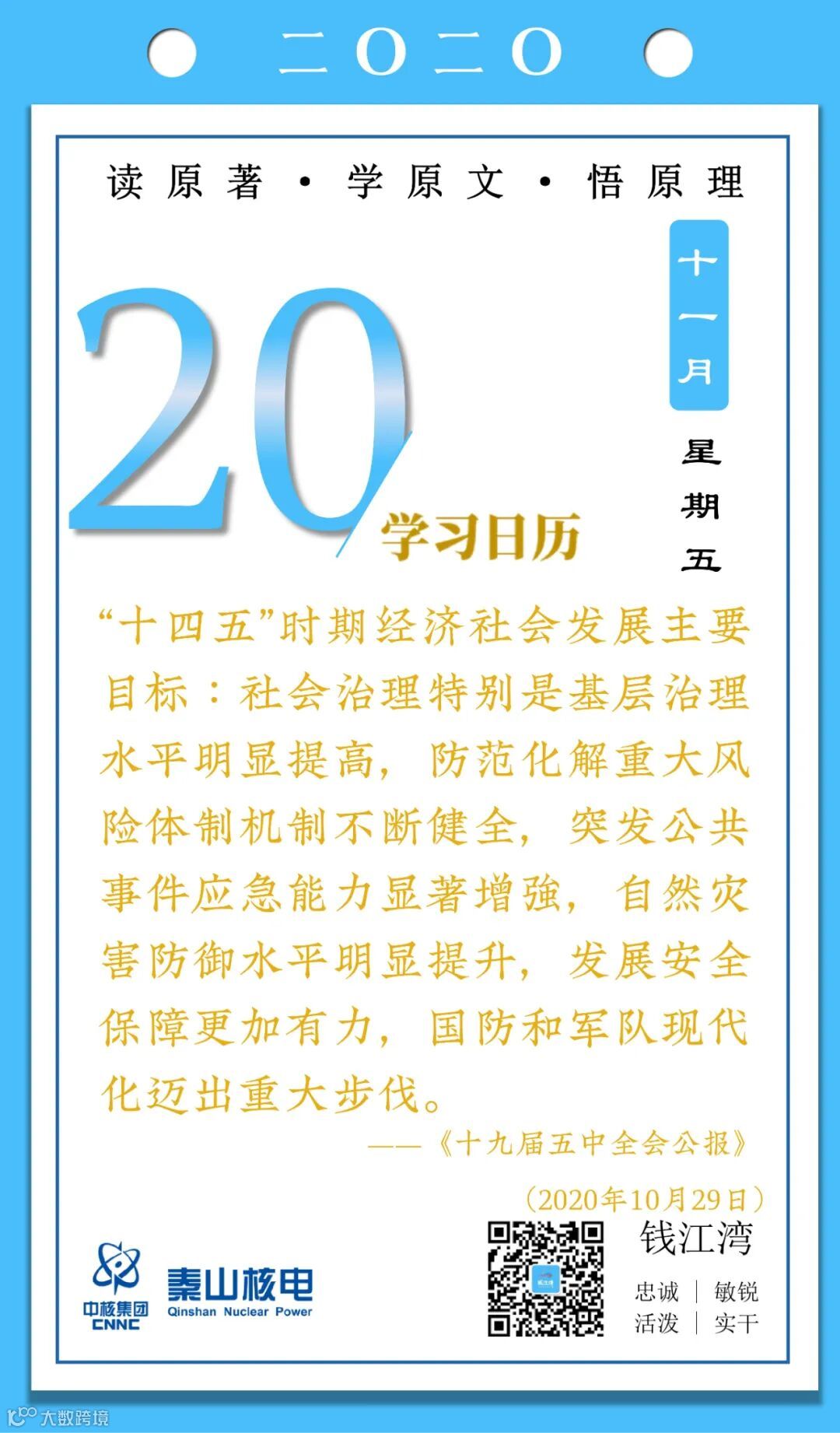 11月20日,秦山核电青年的《学习日历》