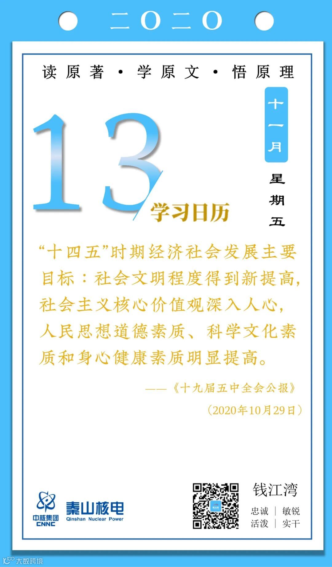 11月13日,秦山核电青年的《学习日历》