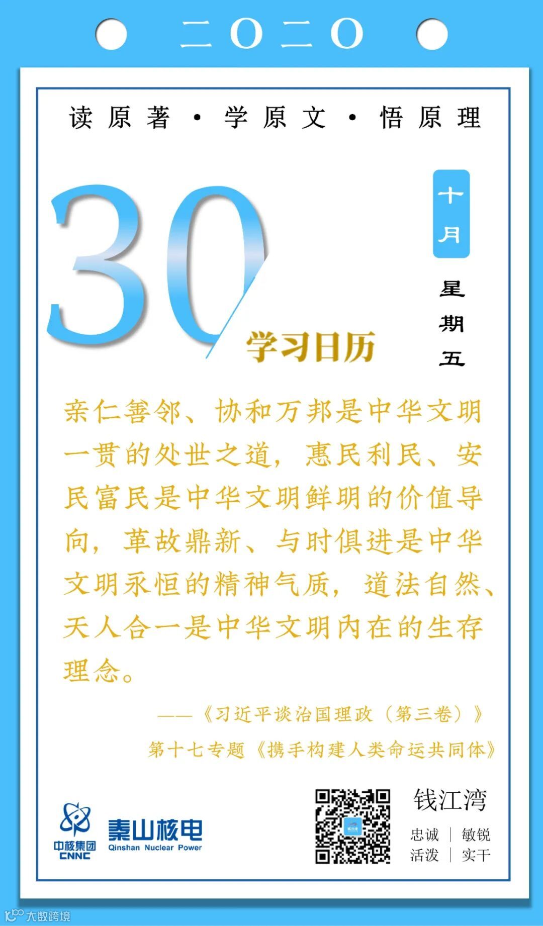 10月30日,秦山核电青年的《学习日历》