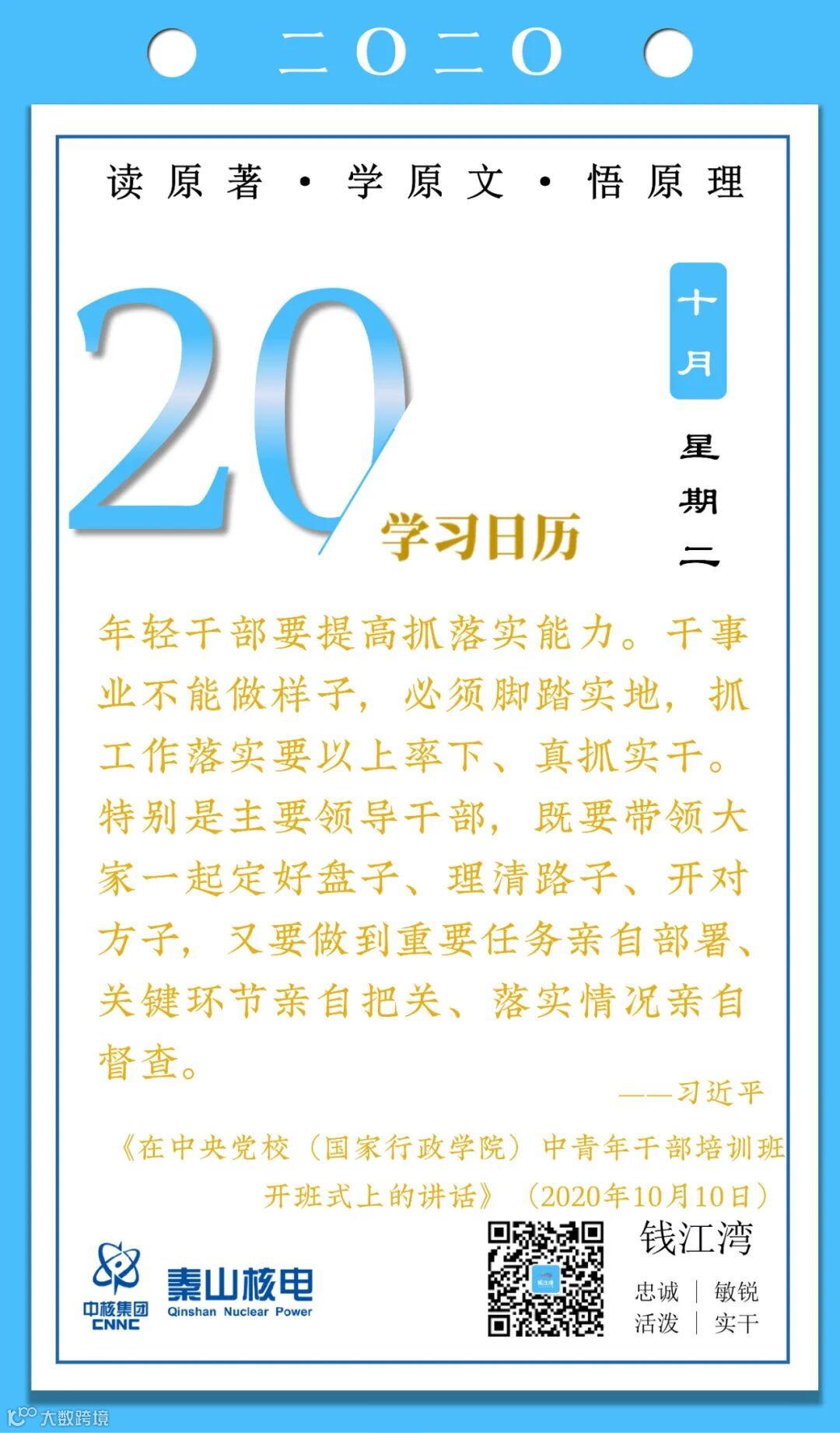 10月20日,秦山核电青年的《学习日历》
