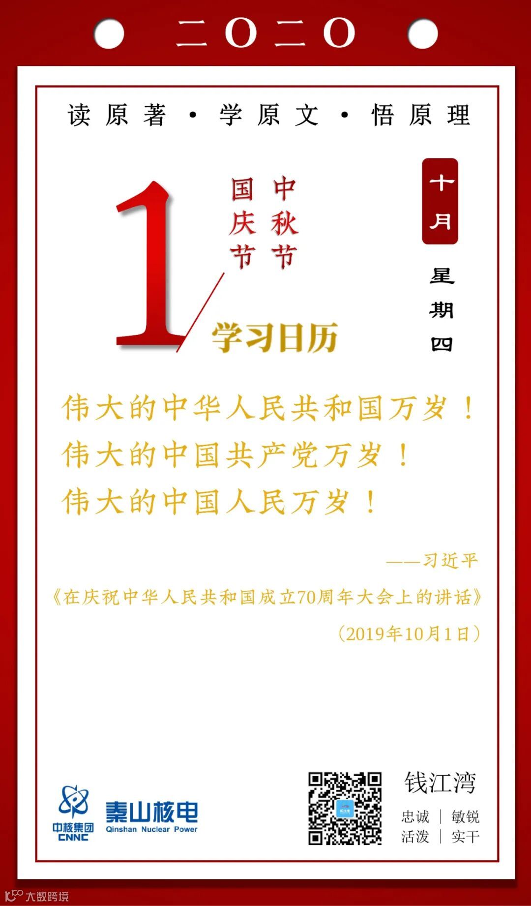 10月1日,秦山核电青年的《学习日历》