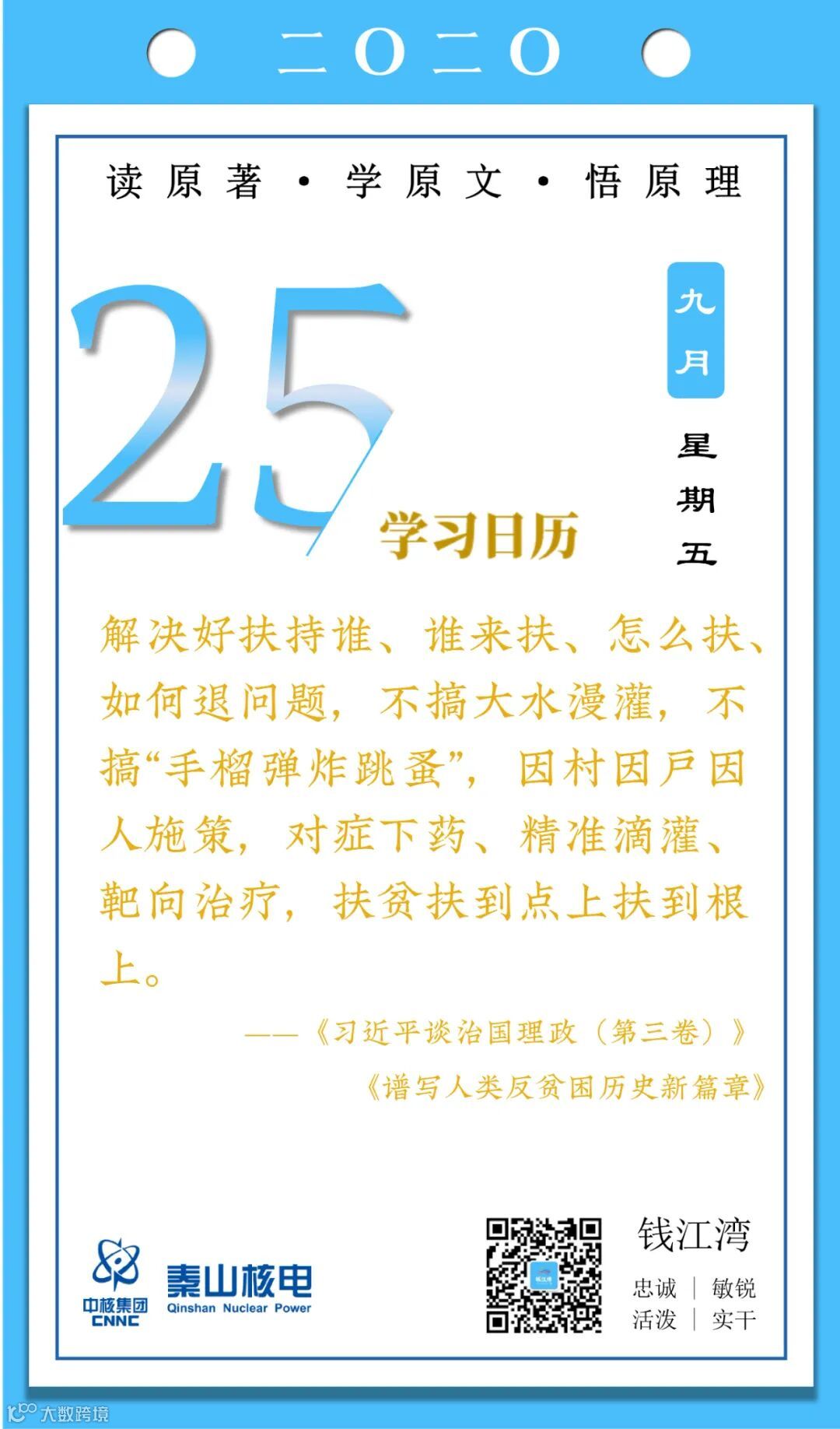9月25日,秦山核电青年的《学习日历》