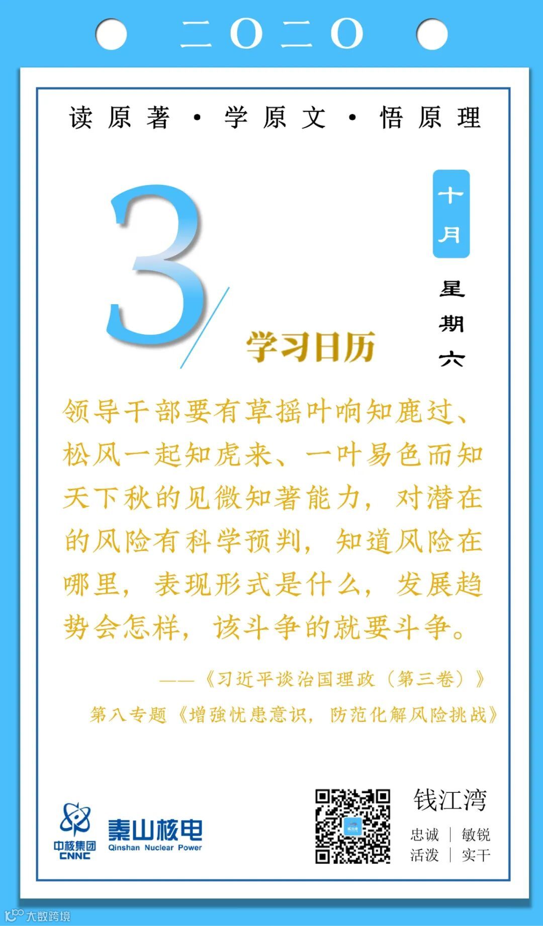 10月3日,秦山核电青年的《学习日历》